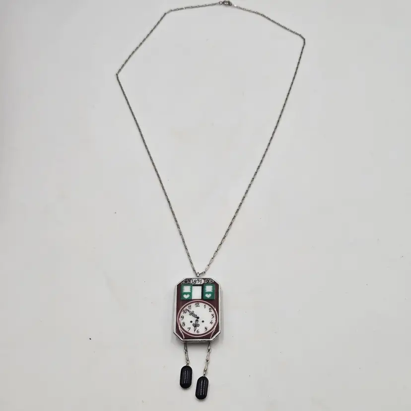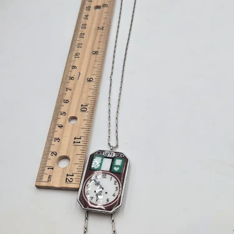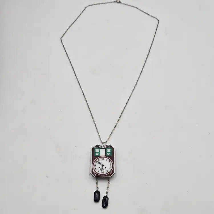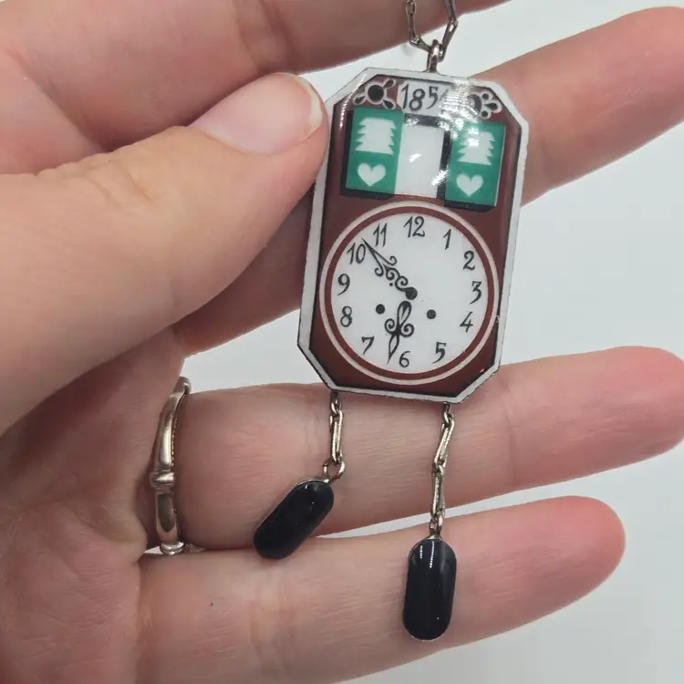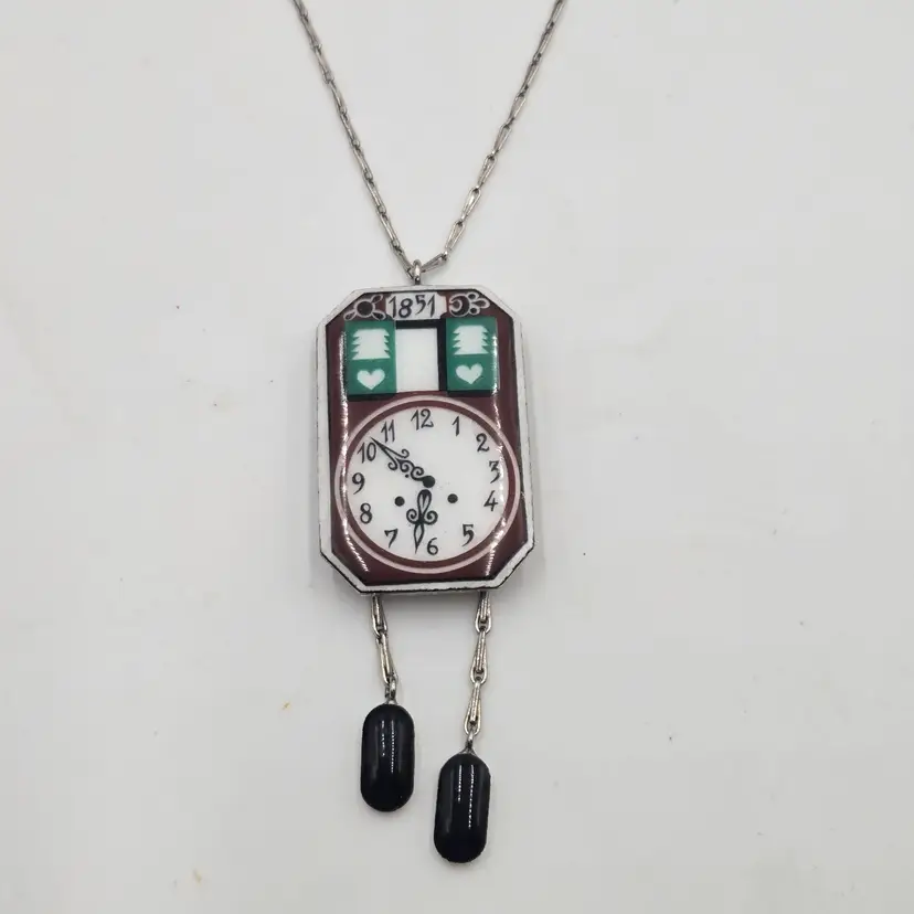 Vintage Michel Le Brun France Rare Hand Painted Enamel Clock Pendant Whimsical