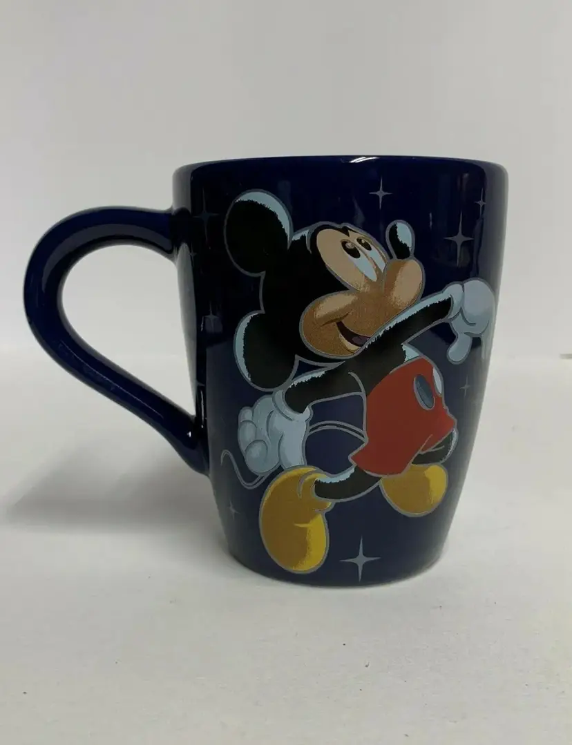 Celebrate the 25th anniversary of Mickey Mouse with this charming coffee mug/cup. Made in Thailand, this collectible item is perfect for Disney fans and collectors. The mug features a colorful design with Mickey Mouse and is branded with the Disney franchise. With its 1996 release date, this item is a true classic. Add it to your collection or display it in your home as a unique piece of Disneyana. This mug does have a small flea bite imperfection on the inside of the mug as pictured. The mug holds approximately 10-12 oz.