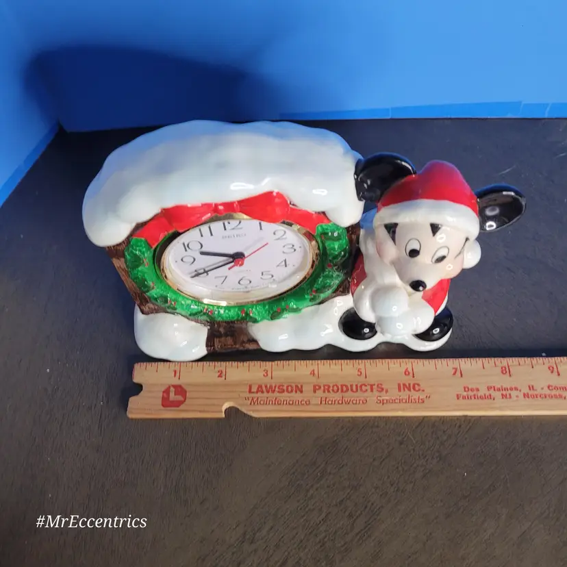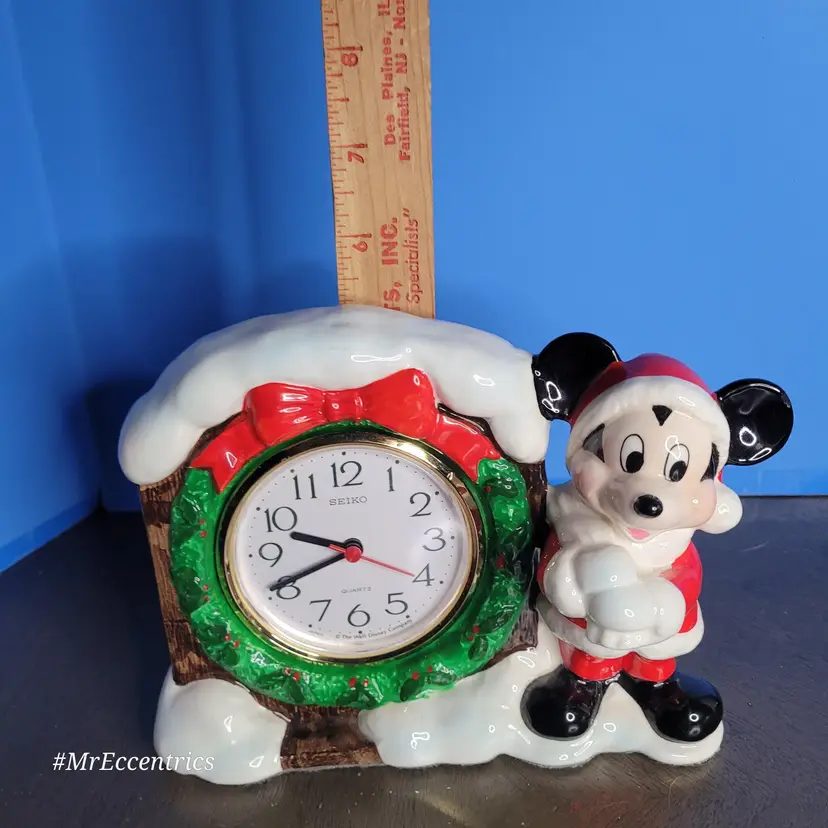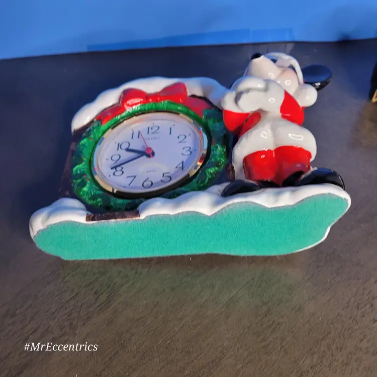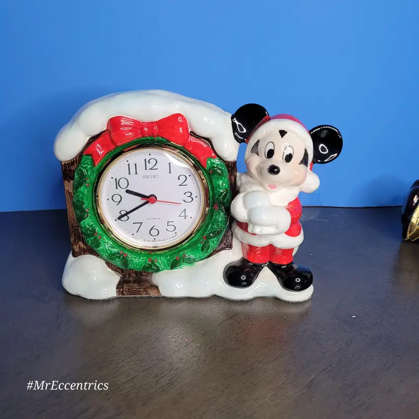 Celebrate the holidays with this charming vintage Mickey Mouse Christmas clock. Featuring Mickey in a festive Santa outfit beside a snow-covered clock, it's perfect for adding a touch of Disney magic to your holiday decor. Measures approximately 5 inches tall. Clock is battery operated 🎅 All items are packaged with care to ensure safe delivery. #nosadmail ✴️ Follow my Facebook page & IG for more curated vintage treasures! ⚡️ #MrEccentrics #vintagecurator #vintagedecor