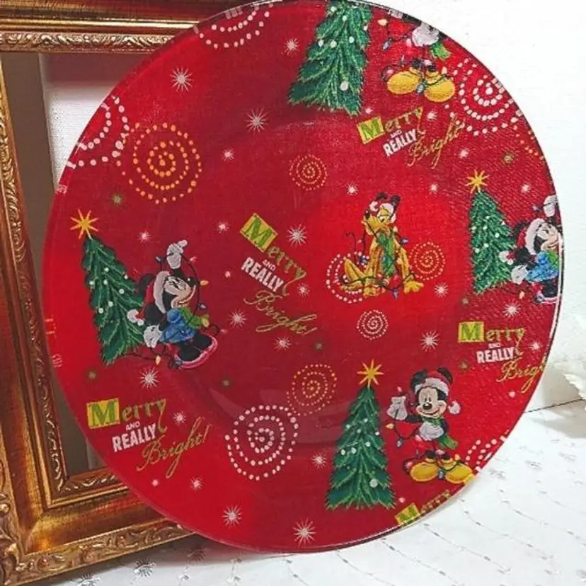 Add a touch of nostalgia to your holiday decor with this vintage Mickey Mouse Christmas decorative plate. Featuring classic Mickey and friends in festive scenes, this plate is perfect for collectors and Disney fans. Measures 12 inches in diameter.