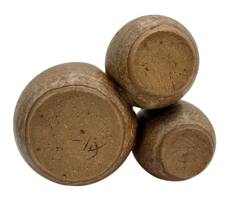 Vintage Mid Century Art Pottery Tri Triple Bud Vase Gourd Weed Pot Beige 4.75”