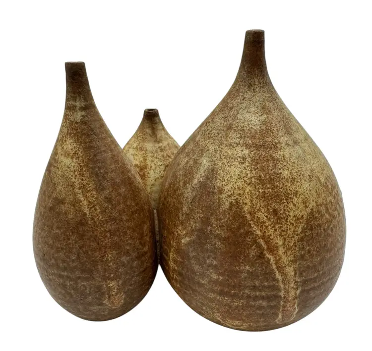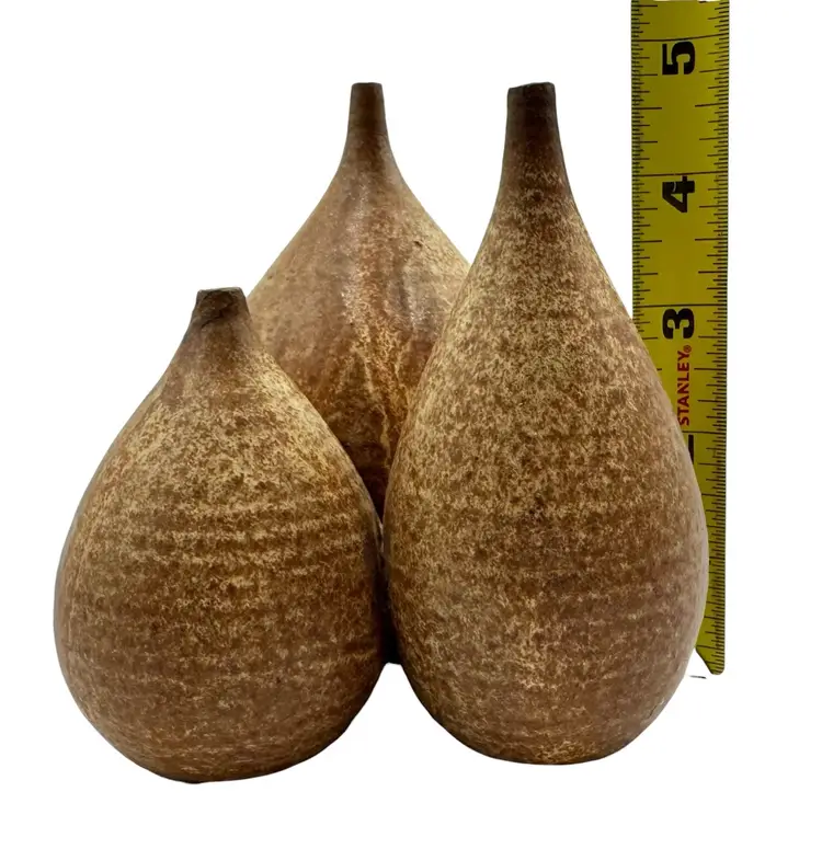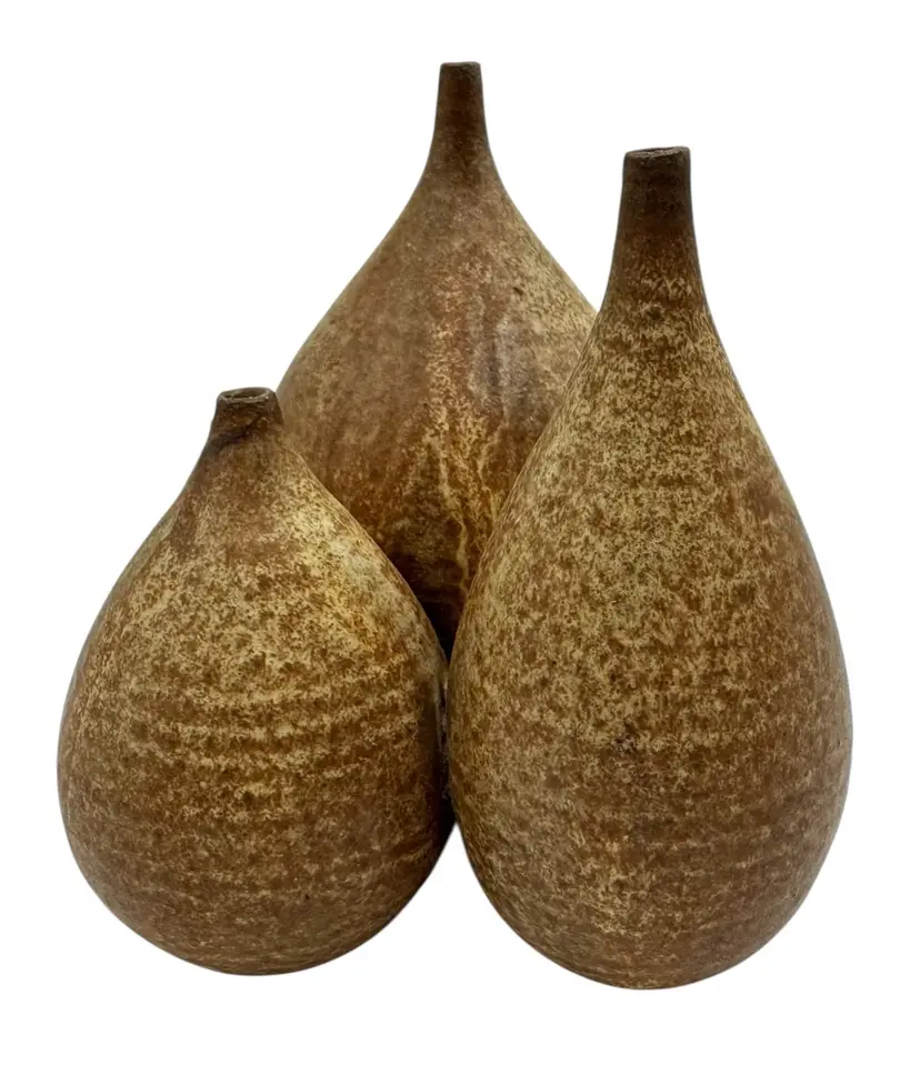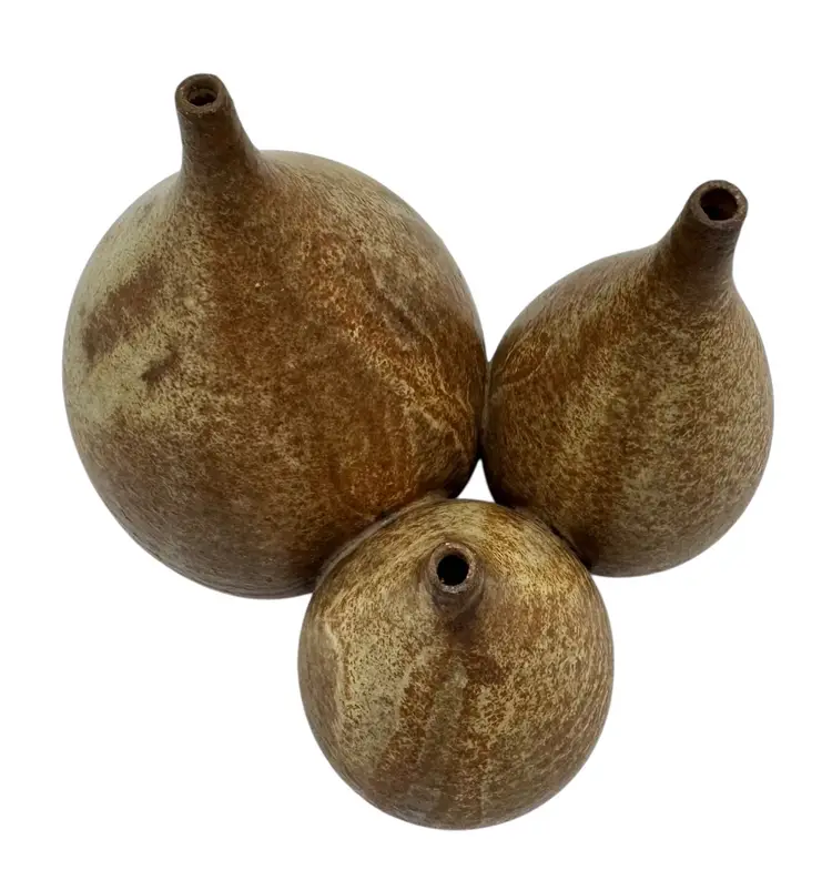 Unique pottery vase with three gourd shaped bud vases stuck together into one piece.