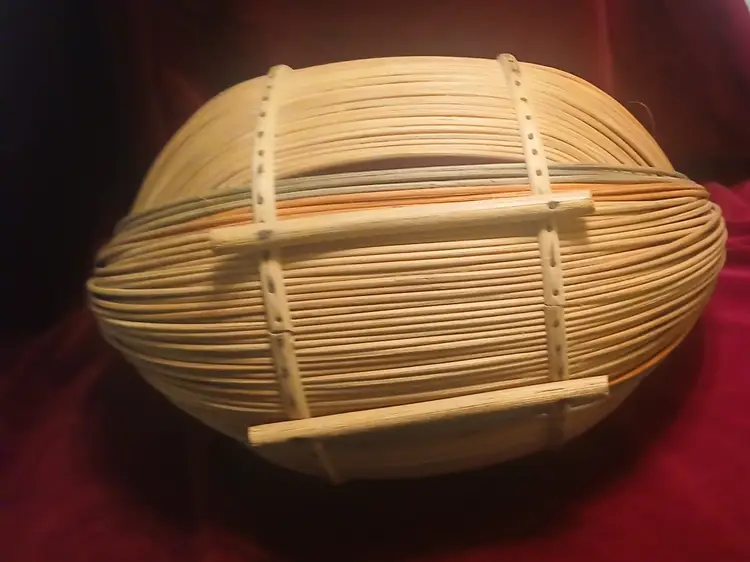 In excellent condition. Made of Bamboo and multiple reeds. Measures Just over 12 inches long 7 wide 11 tall