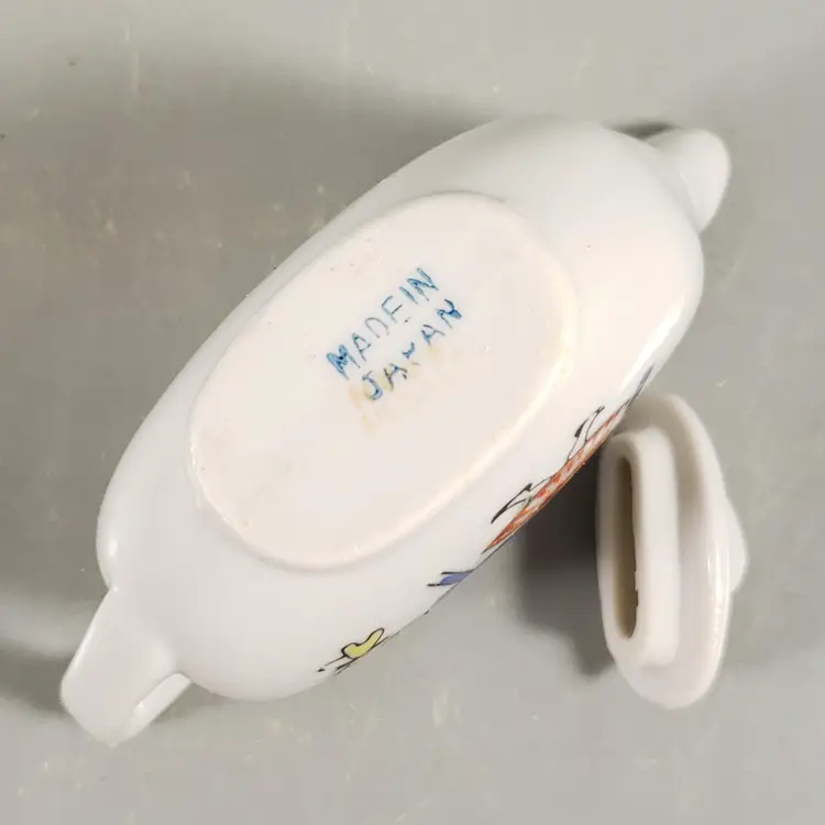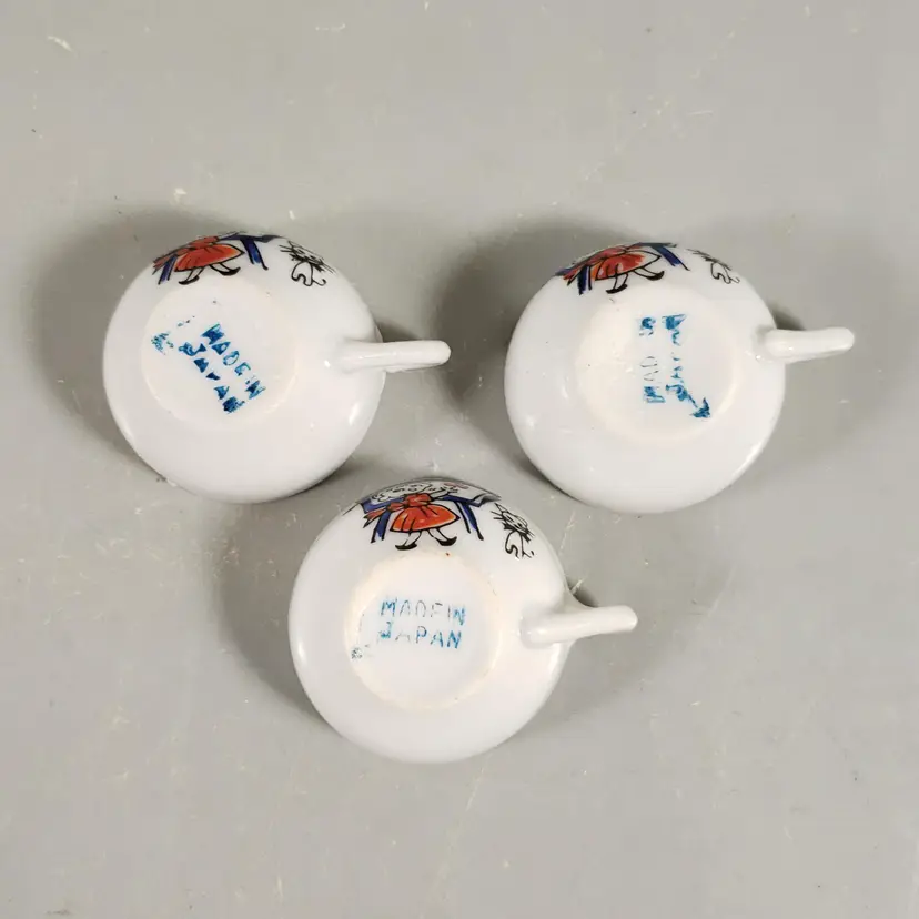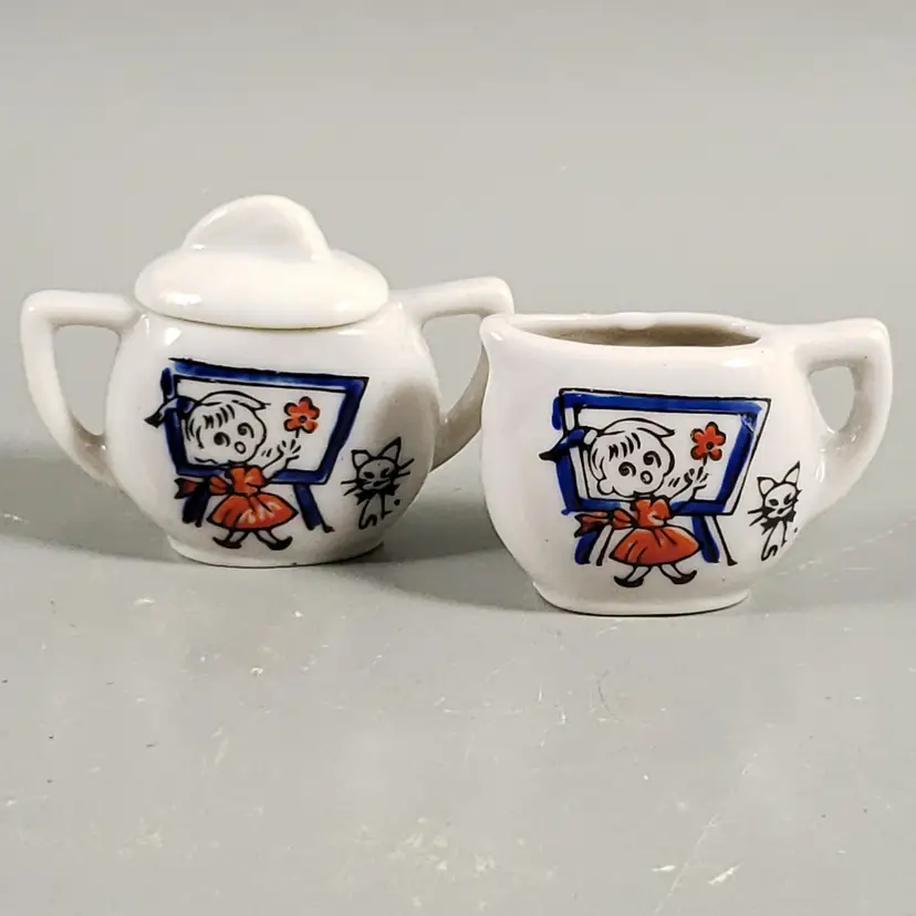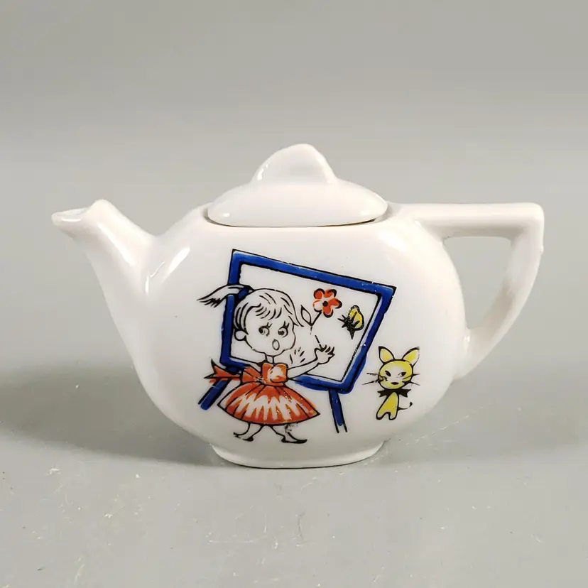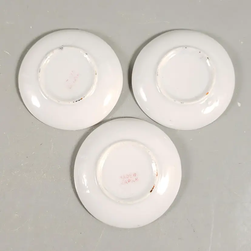 • Set includes teapot with lid, creamer, sugar with lid, cups x 3, small saucers x 4, large saucers x 3, as shown in photos