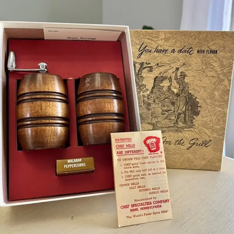 New old stock colonial style salt and pepper shakers made in the USA. These are brand new in the original box and unused. There is one manufacturing error on the salt shaker as shown in the photos. These come from a smoke free and dog friendly home. Message me with any questions.