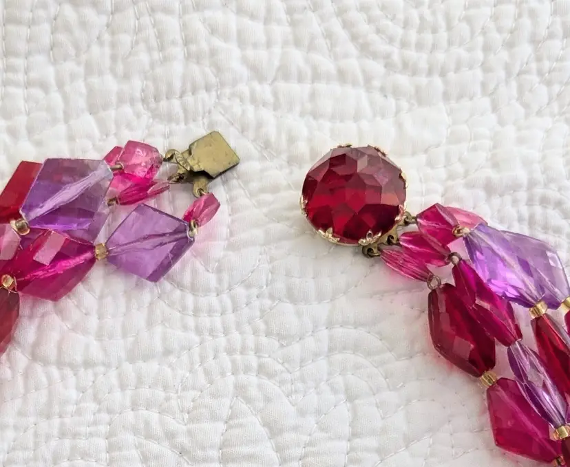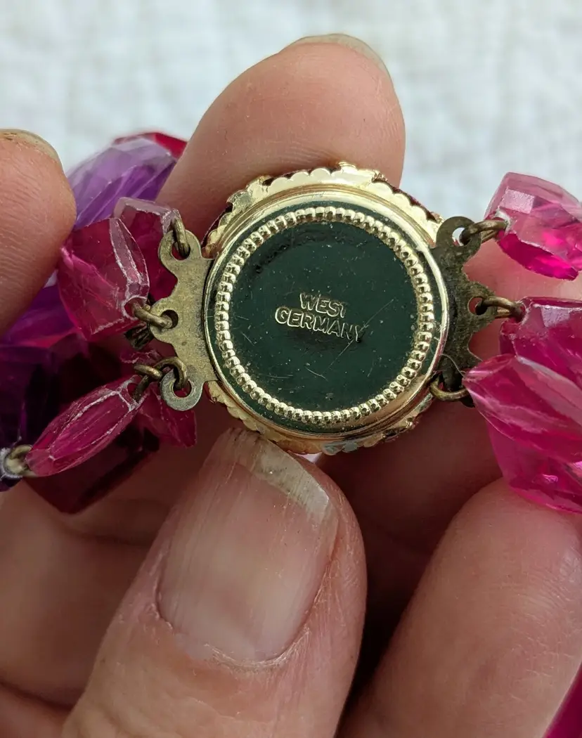 The strands of this necklace fall in graduated layers with the shortest strand being 16-1/2". Push-in clasp. Marked West Germany