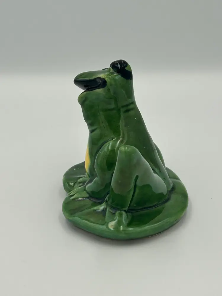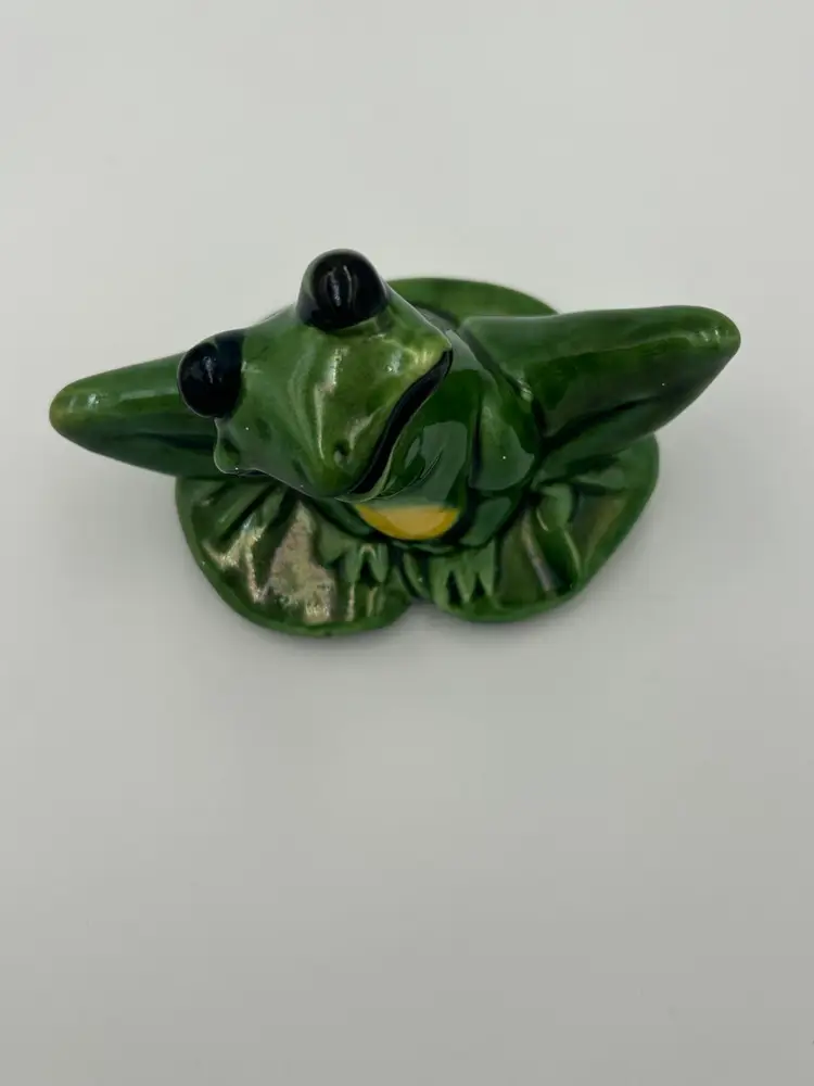 Vintage mid Century Green Ceramic Frog On Lily Pad Figurine