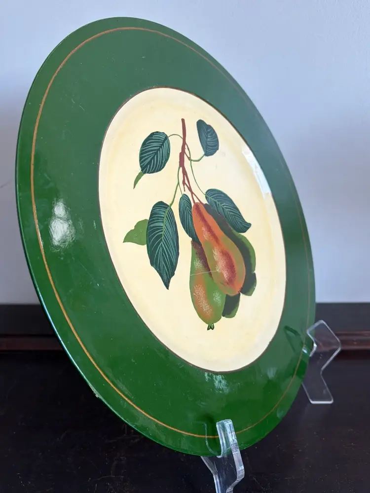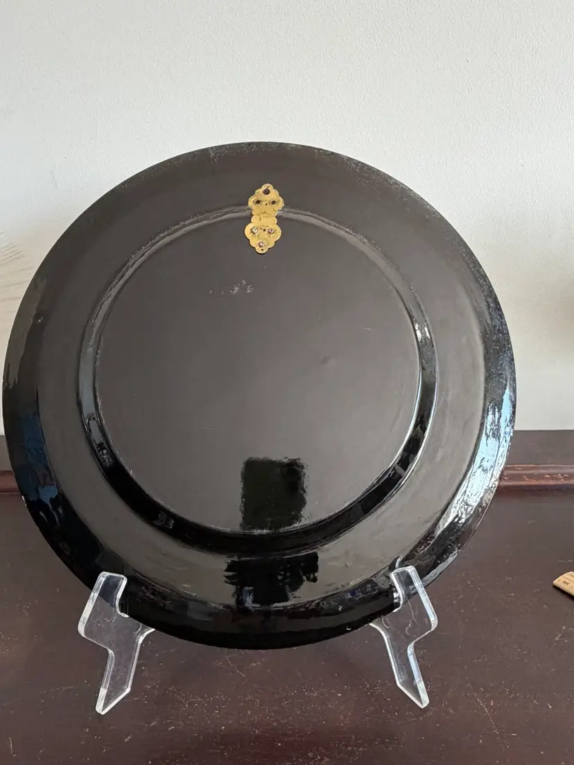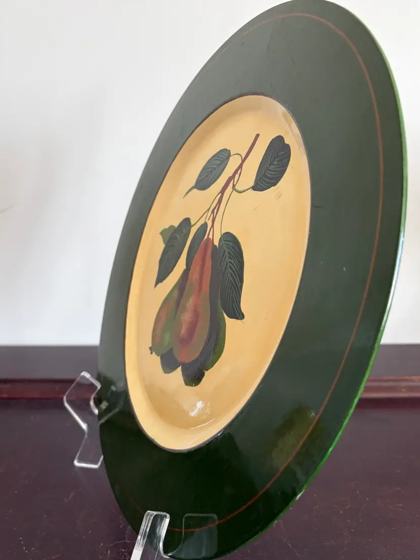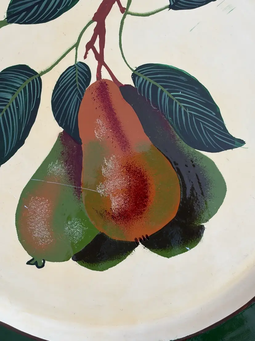 •Decorative lacquer tray -charger-wall decor •Era: Mid-century (1950s–1970s most common) •Style: Mediterranean / Italian market décor Ready to hang. There is is light scratch in the lacquer layer along the center ( as shown) It does not effect the motif- priced accordingly