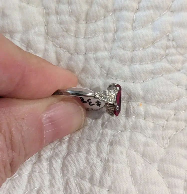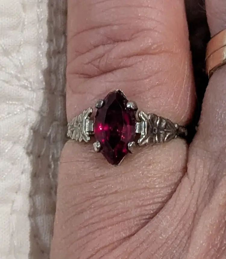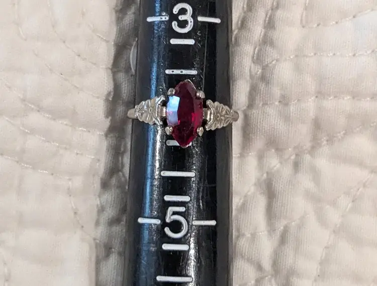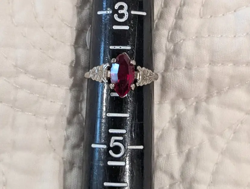 The stone is 3/8" long and the ring is marked Sterling MH.