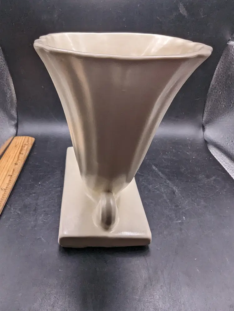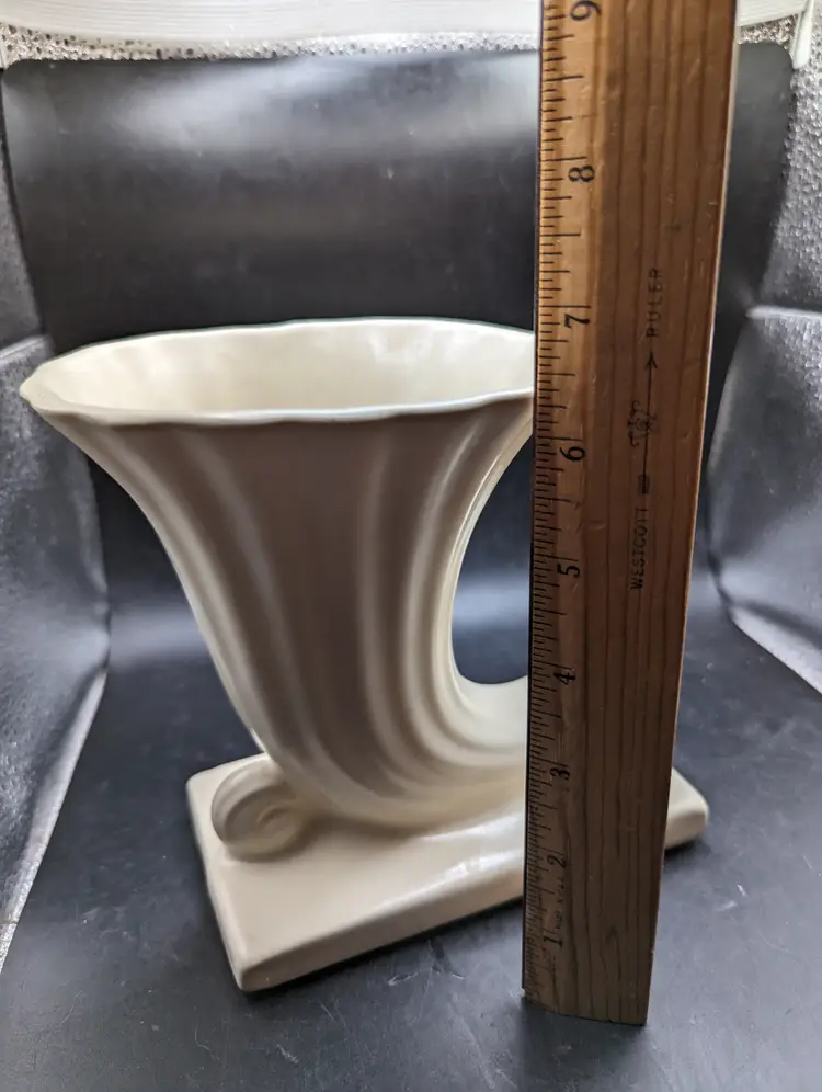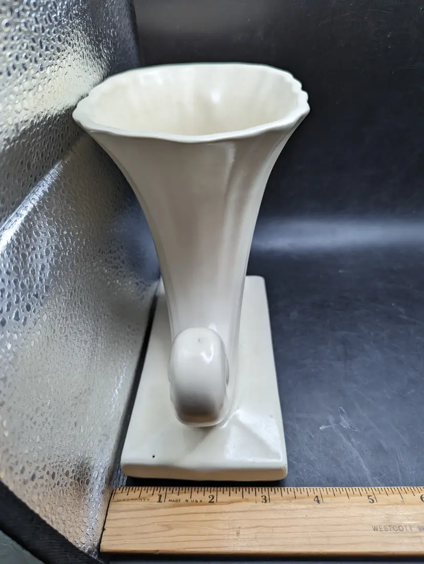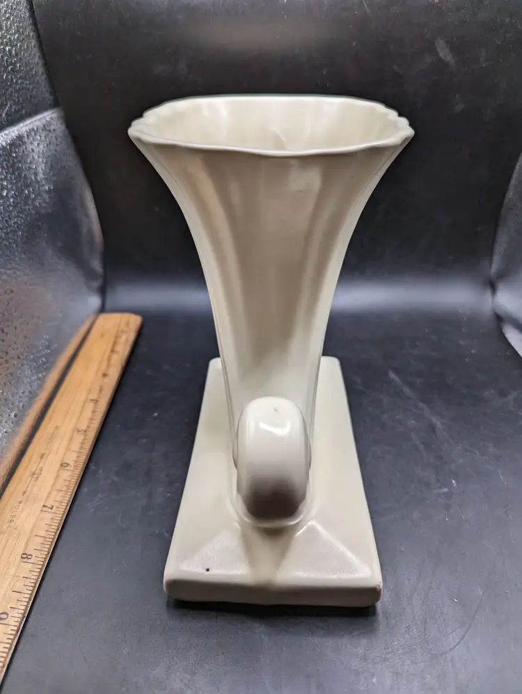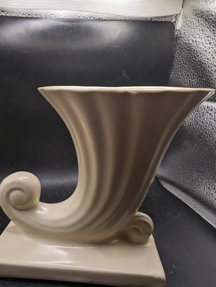 This is a lovely Vintage Mid Century Modern Cornucopia Vase Ivory Matte Finish As Is. Please see all pictures for condition and measurements. There is a repaired chip on the bottom edge as seen in last picture.