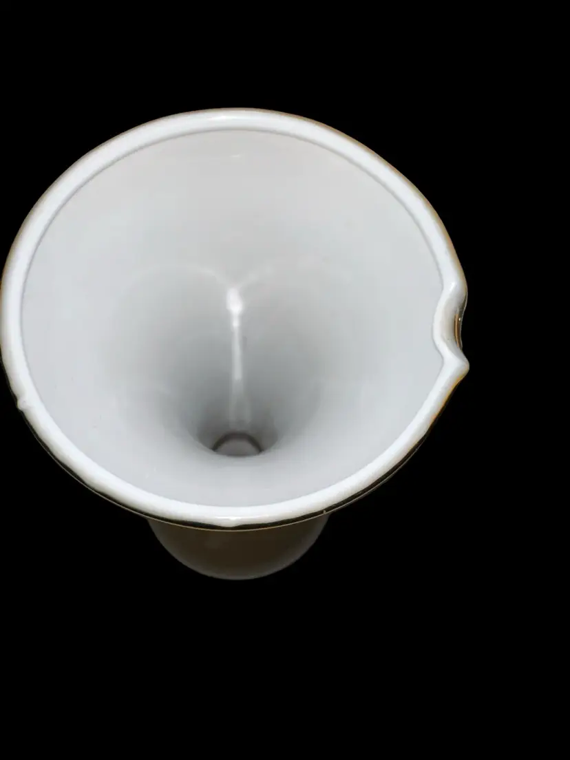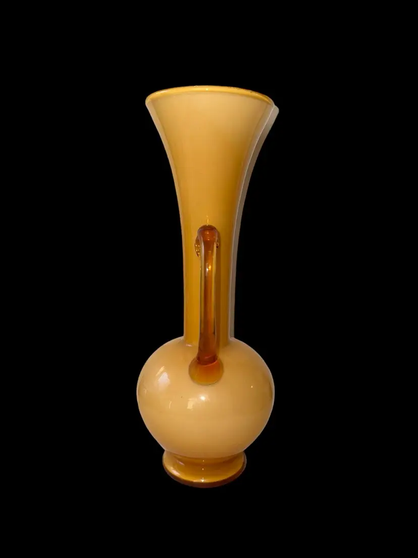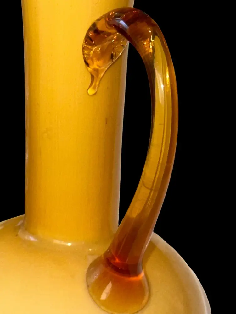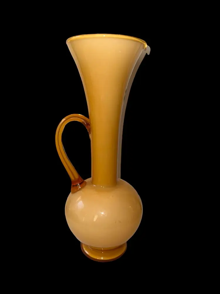 No chips or cracks, handle is solid, no repairs. It has two areas of staining inside the case at the bottom, I have not attempted to remove it. Measures 9.5” tall and about 3.5” wide. Attributed to Empoli, but no stickers or markings.