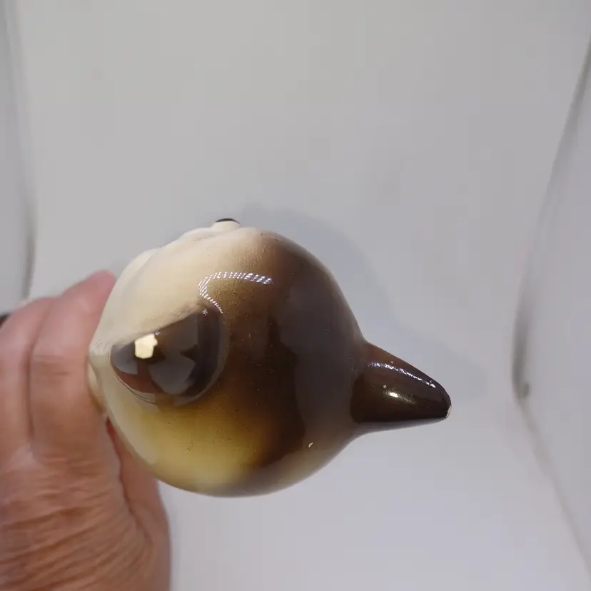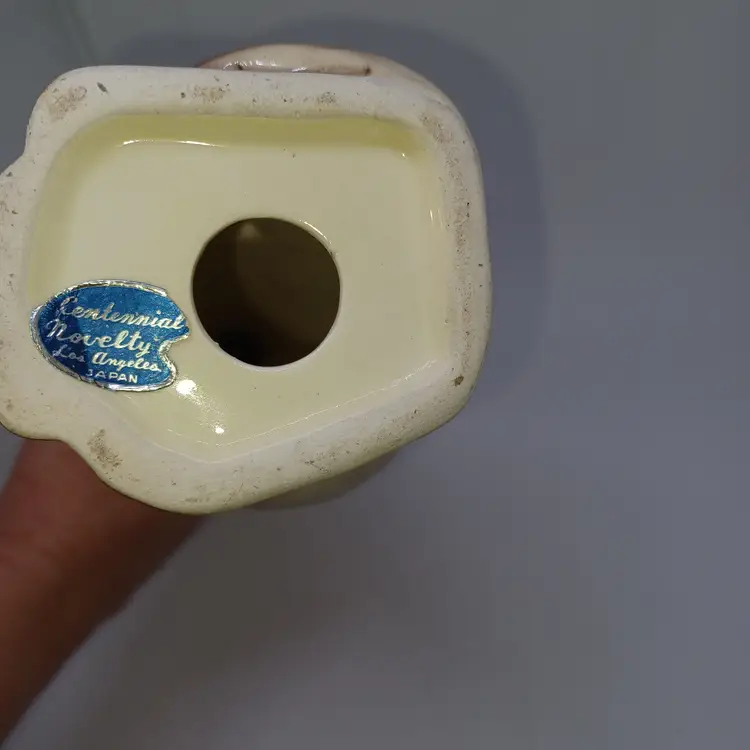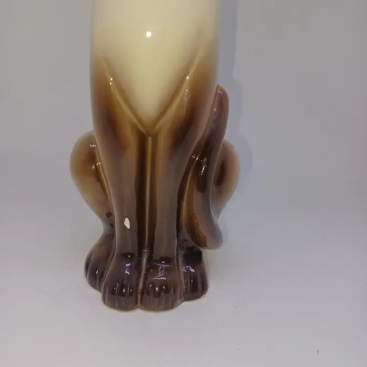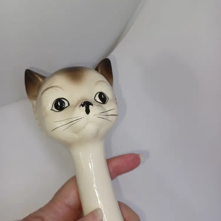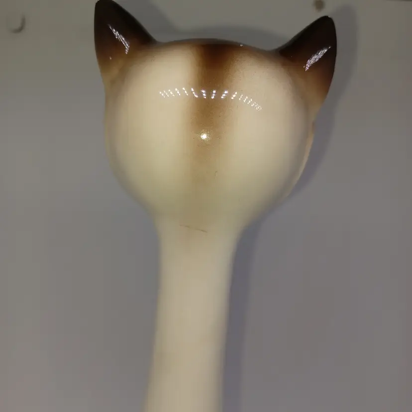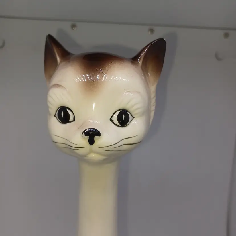 Vintage Mid-century Modern Long-necked Siamese Kitty figurine 13 in Has original foil sticker on the bottom Centennial Novelty Los Angeles Japan Item was received from its original owner so in the same family for over 50 years does have a few minor chips top of the ears and one around the front nothing that really detracts from use or display anyone who slightly crafty can do an easy touch up on it also has a manufacturing flaw on the back of the neck and missing paint from the cold paint on the black of its nose absolutely adorable long neck Kitty please see all pictures as they are the best description all items from a smoke-free home with pets experienced fragile shipper