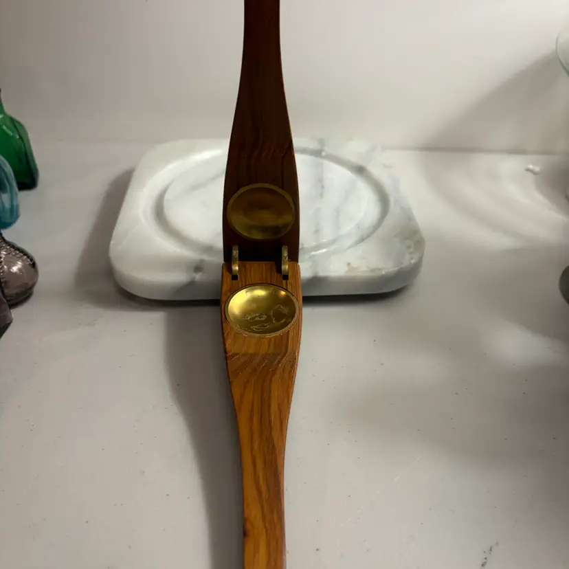 This vintage mid-century modern nutcracker is a unique and stylish addition to any kitchen. Made of wood with brass accents, this piece exudes a modern aesthetic with a touch of retro charm. Originating from Sweden, this nutcracker combines quality craftsmanship with a timeless design that is sure to elevate your dining experience.
