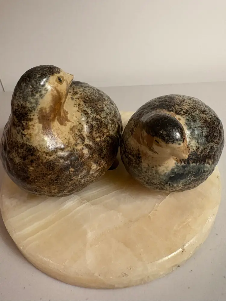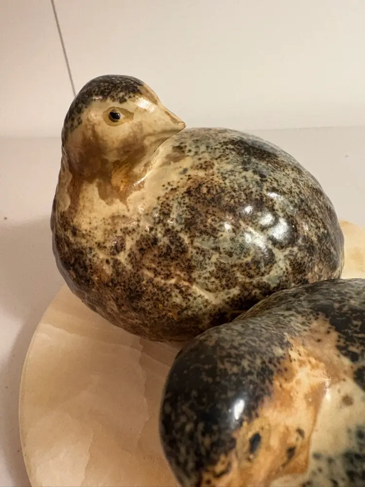 Two brown quail bird figurines made of pottery with detailed, hand-painted finishes. They are vintage Homco Japan craftsmanship, known for quality and charm. Perfect for display, shelf décor, or a curio cabinet. Great for collectors of birds, wildlife, or vintage home décor.