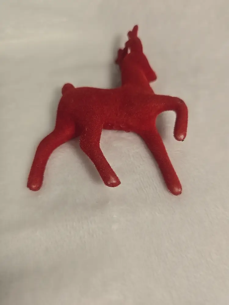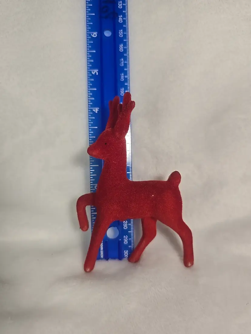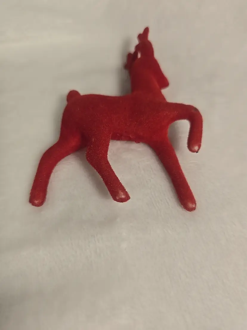Pre-owned vintage condition. Some wear to paint on cream reindeer and minor flock loss on red reindeer consistent with age. No cracks or breaks. Please review photos and closeups.