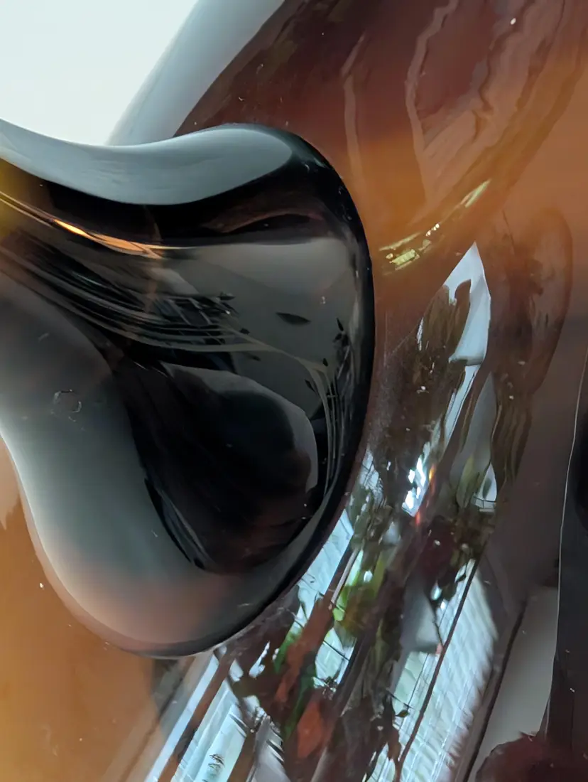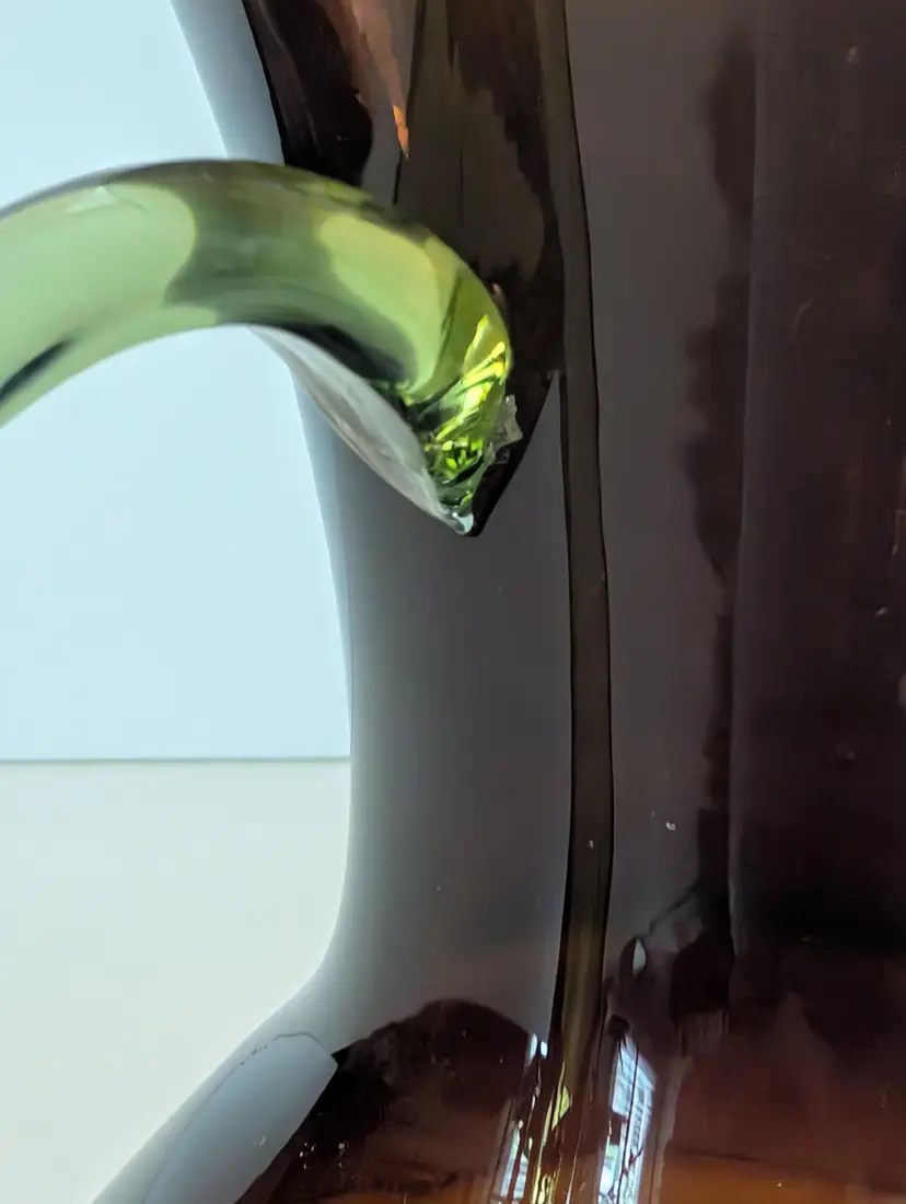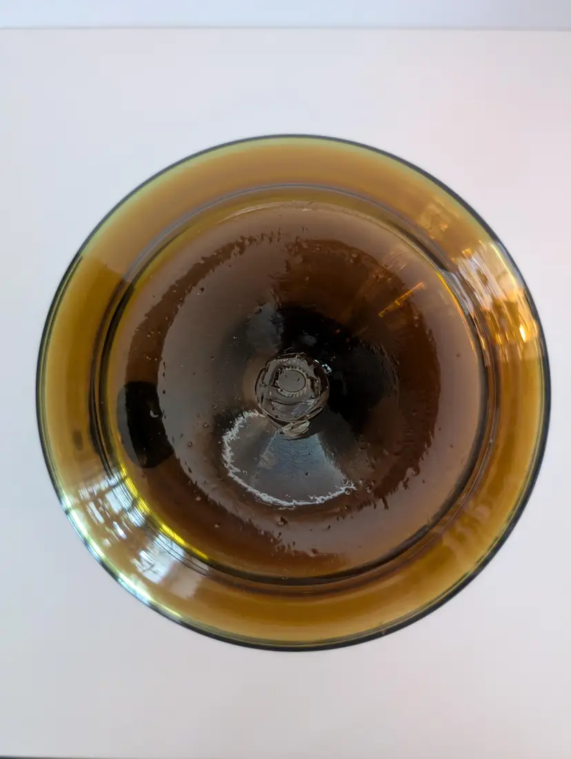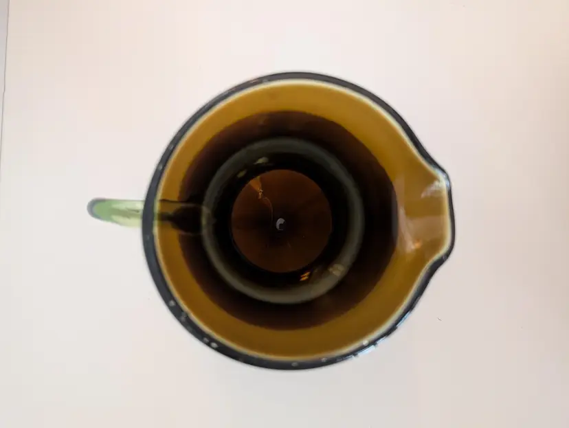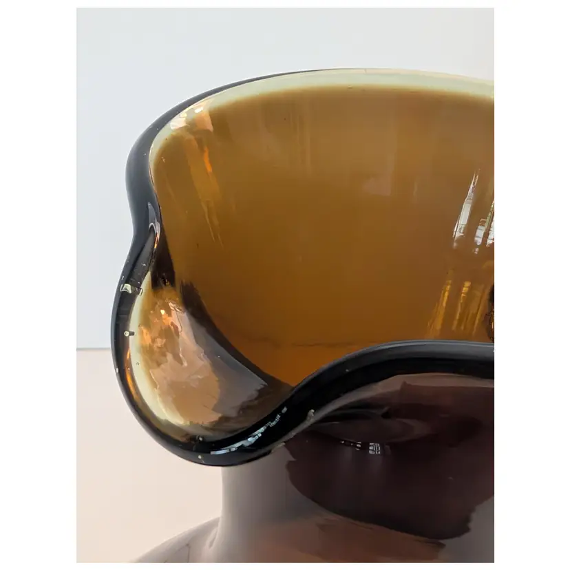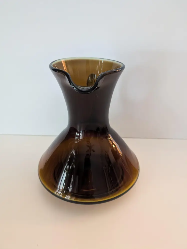 • Hand-blown glass • Amber color • Handle for easy pouring • Unique design • Durable material