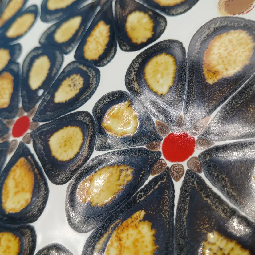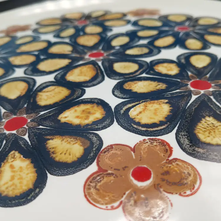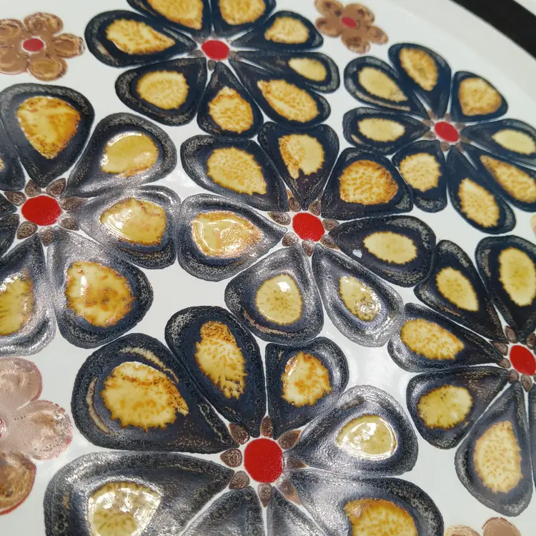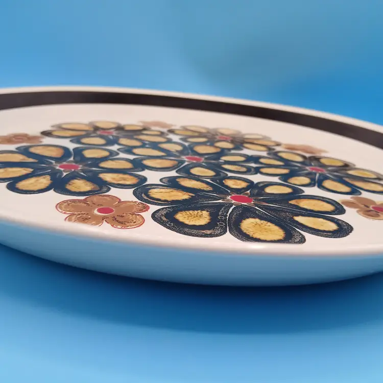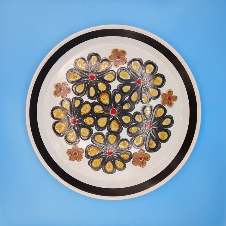 #7904 Textured florals on this great vintage serving platter! Measures slightly over 12" in diameter. No damage. Made in Japan. Great BOHO style! Thanks for looking!