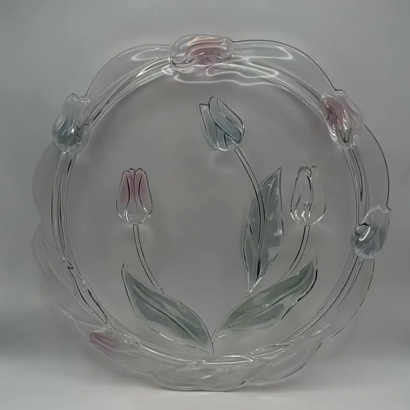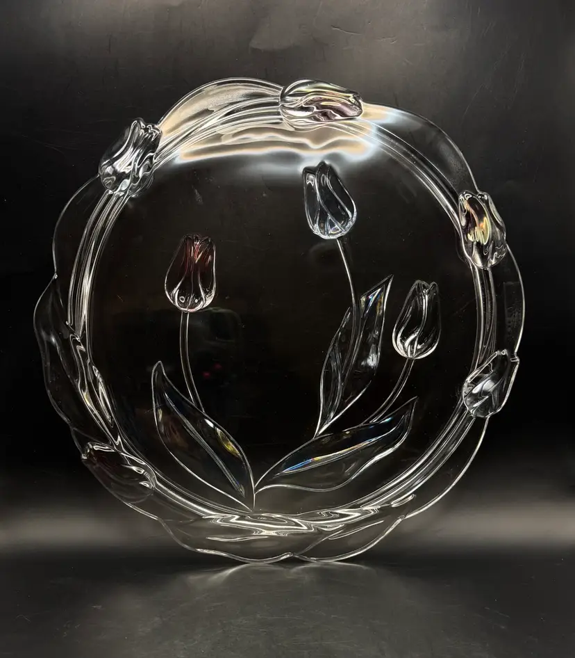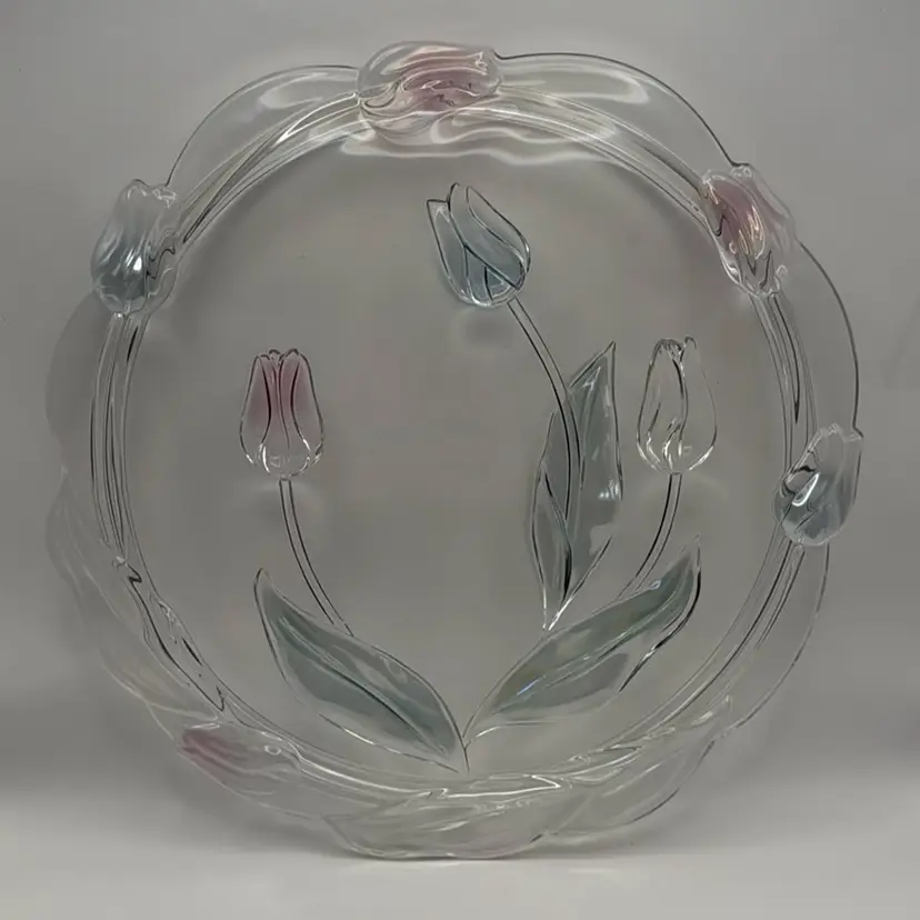 Features: 3D molded, iridescent pink & blue tulips and green leaves