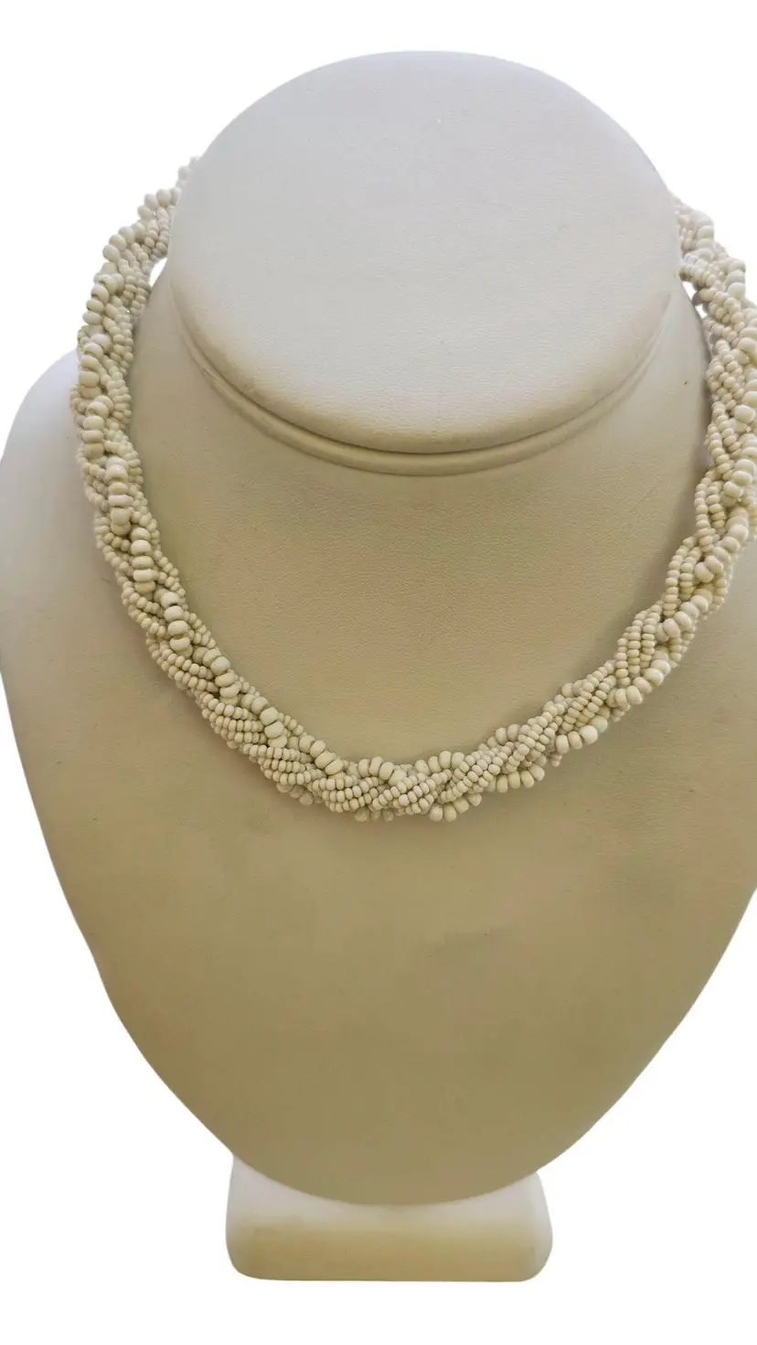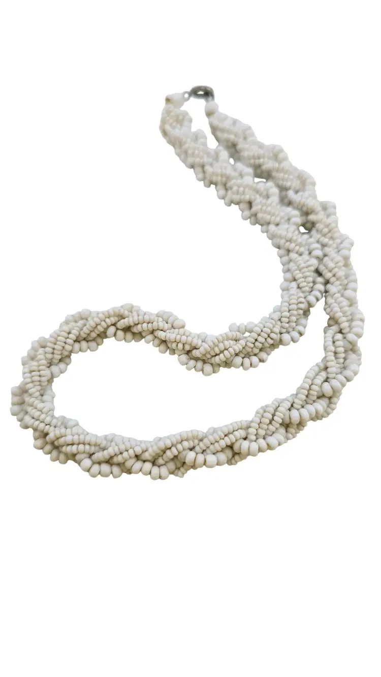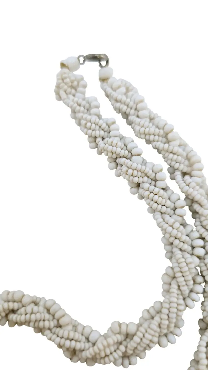 Vintage Milk Glass Braided Seed Bead Necklace (A8243)