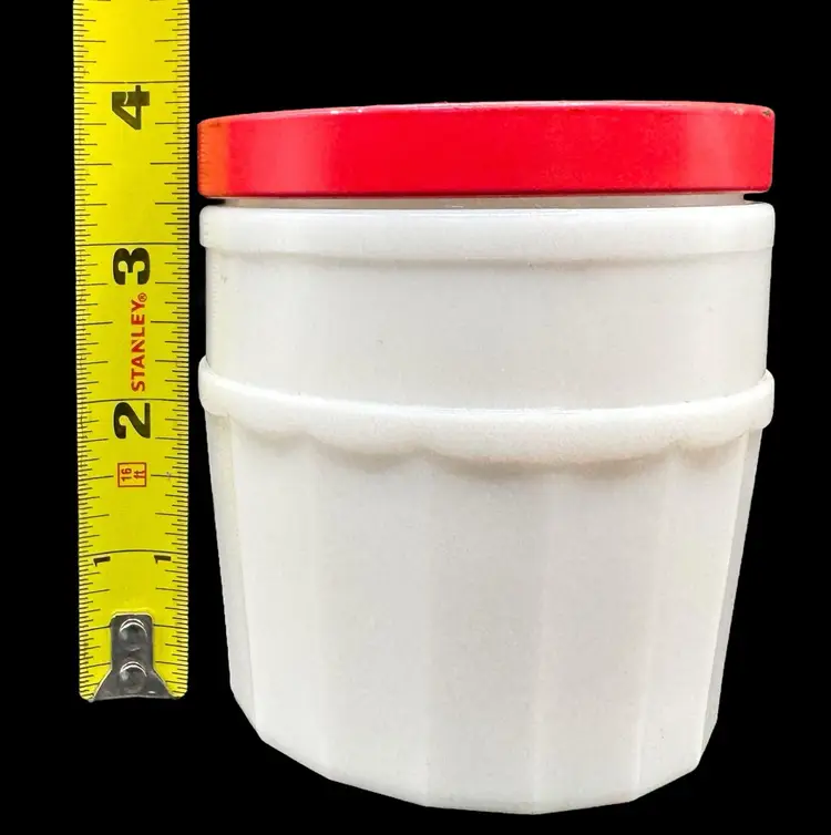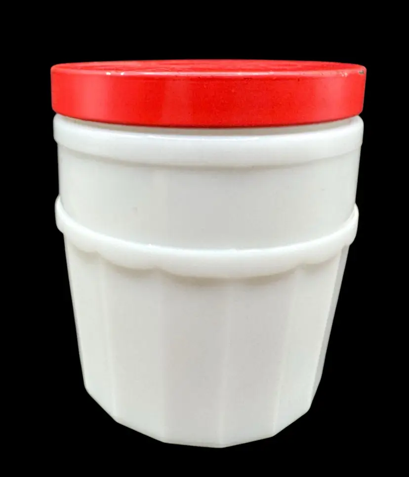 Vintage cold cream jar with striking red lid.