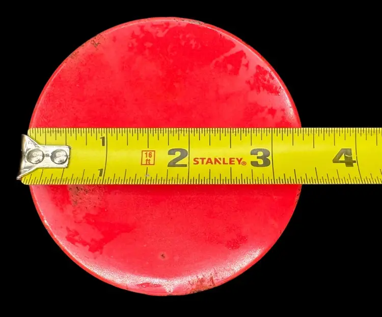 Condition: Paint loss and rusting to lid. Dimensions: 3.75” tall & 3.25” wide