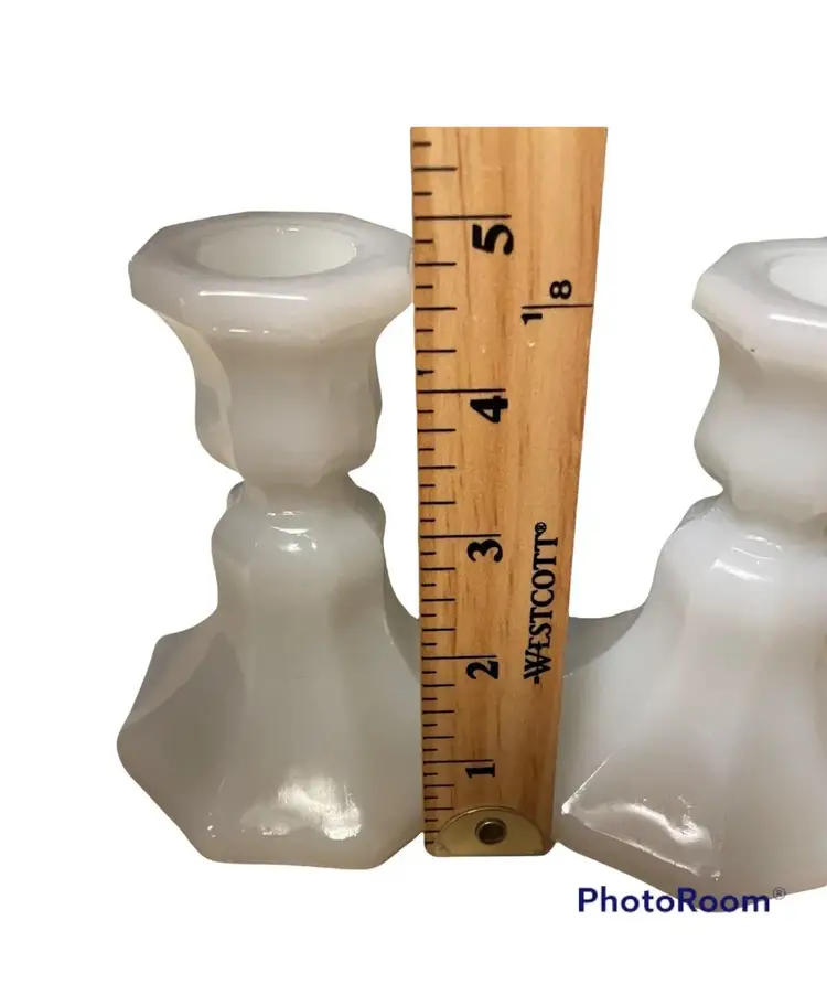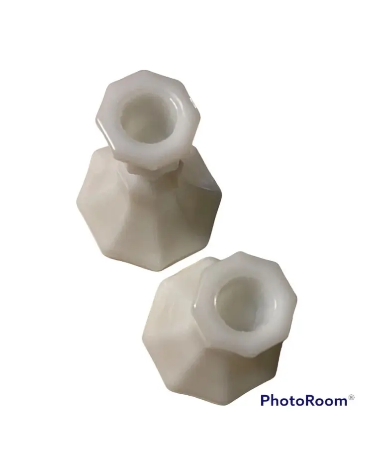 Vintage Milk Glass Candle Holder Set 4.75” X 3.5”.
