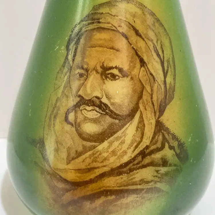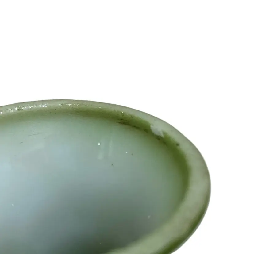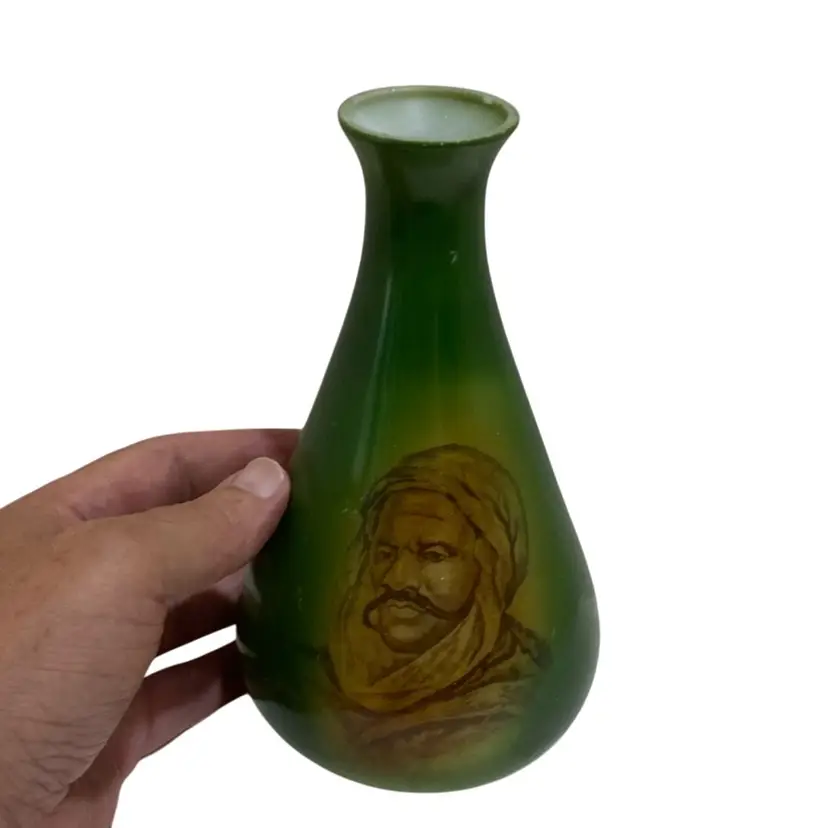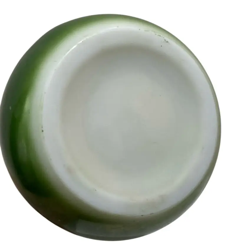 Vintage Milk Glass Westmoreland Glass ? Arabian Vase 7 1/4” T Used pre owned. One tiny flea bite chip located on the top rim. Some small spots and scratches on green paint. Both as seen in photos. Thanks and enjoy…