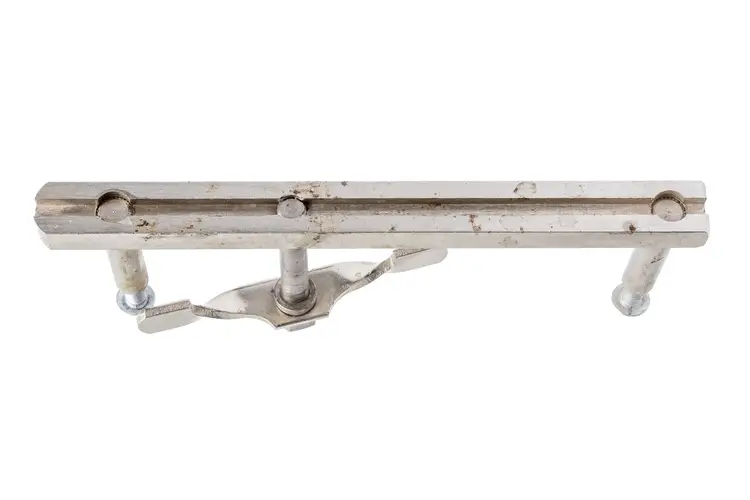 This is an Excellent Gib Assembly for vintage Millers Falls mitre boxes. It is a 6-piece assembly including all parts shown. There is almost no wear. No damage and a solid replacement for a damaged part. Replacing the Gib can be challenging if you have never done it. Please reach out to me (Nate) if you need any assistance. Unboxed specifications: Length is 7-1/16" and the hole spacing between the plug screws is 5-13/16" On Center; Entire unit as shown weighs 10.2 ounces.