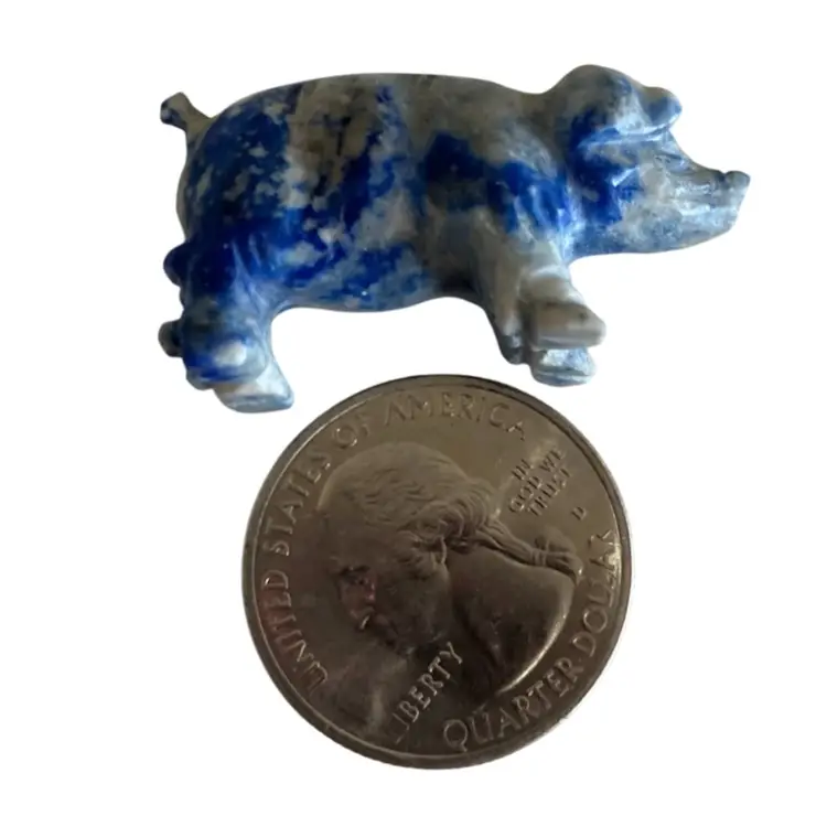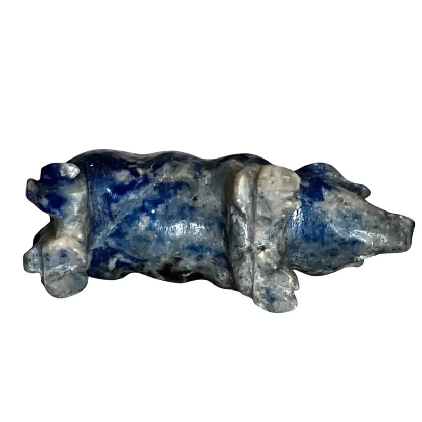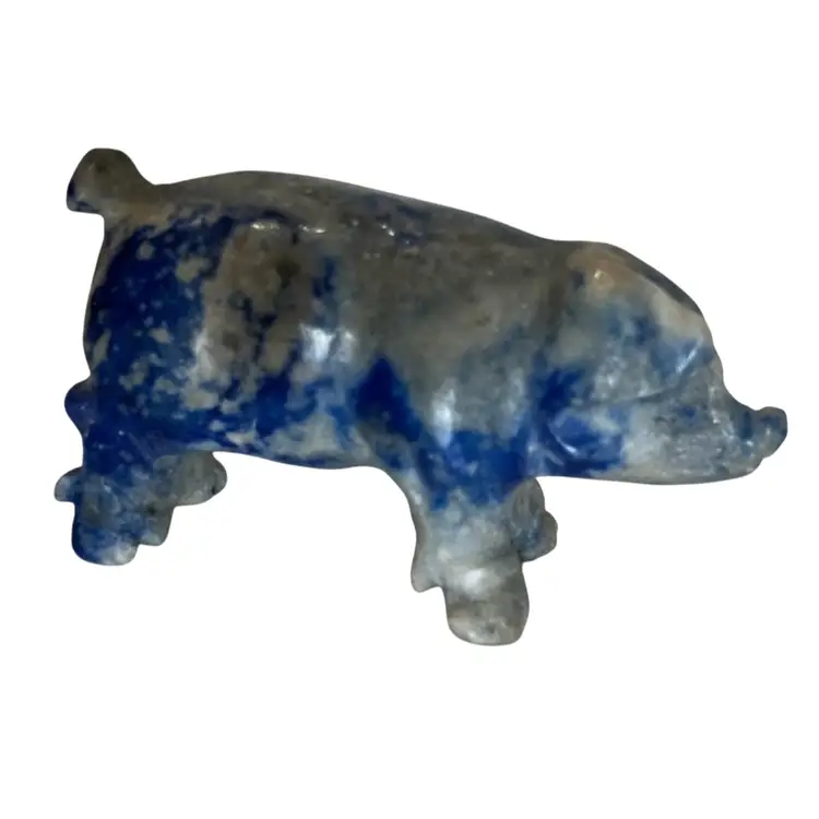 Beautiful color patterns in blue and gray in this cute little pig carving. In good condition no cracks or chips. Similar stone coloring to sodalite but not sure of exact stone type. Please see photos for condition thank you.