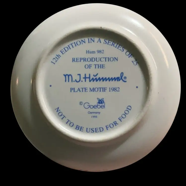 Vintage Mini M.J. Hummel Plate. 1982 Goebel Germany. 12th Edition In Series Of 25. Hum # 982 ~ Titled “ Umbrella Girl” Collectors Plate.