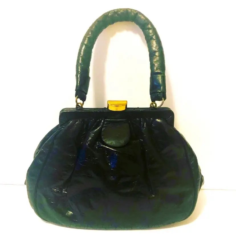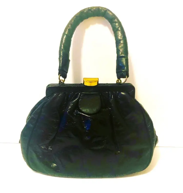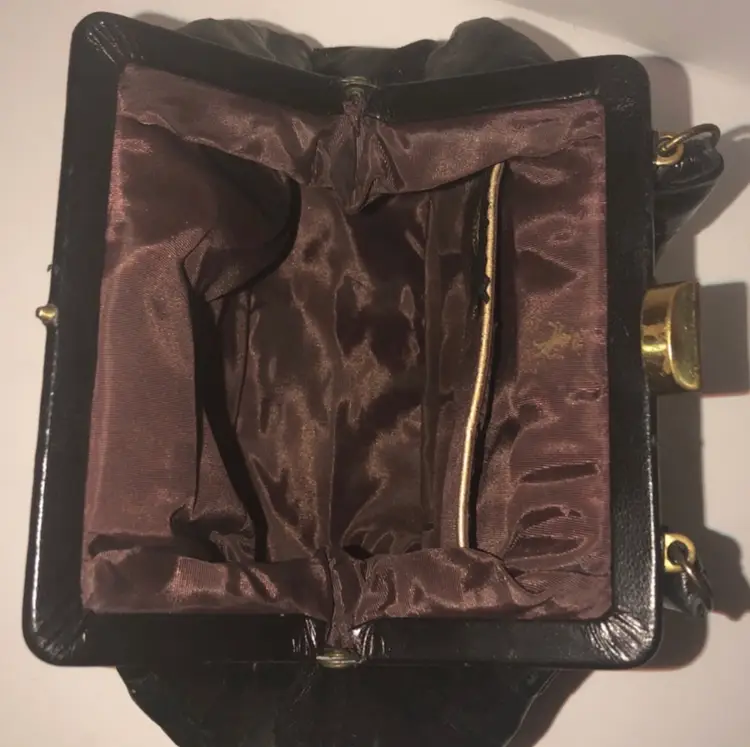 Vintage Mini Top Handle Black Bag. 1960s style. Material appears to be manmade. I will update the listing with exact measurements. The inside of bag is clean and opens up wide to be able to hold a lot items. I. Miller bag made in Italy.