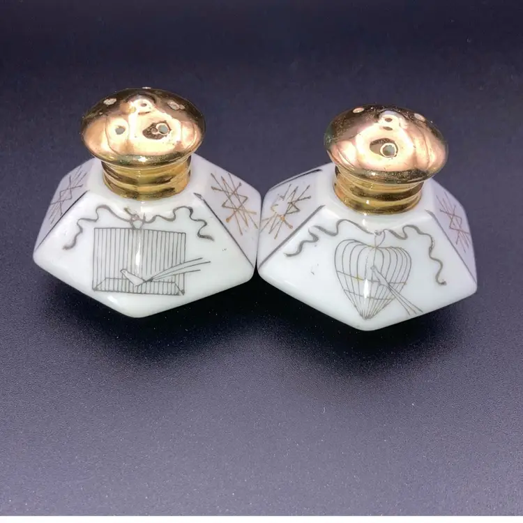 Vintage Miniature Caged Birds Salt And Pepper Shakers Set! Made in Japan! 2" tall 2” Wide! Minimal Gold Wear Due To Age!