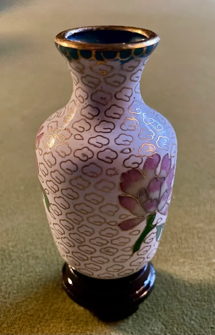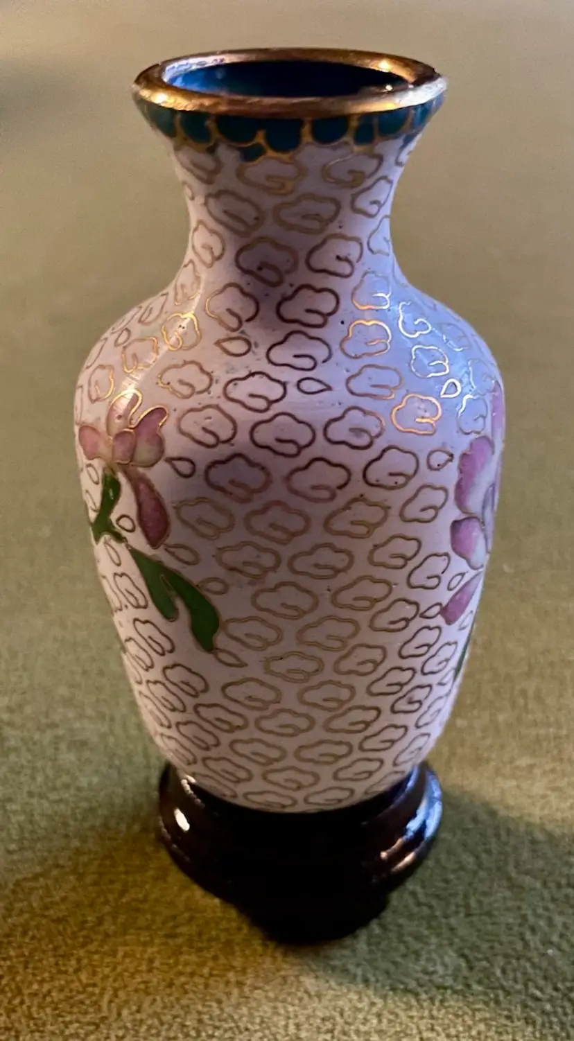 Vintage Miniature Cloisonne White Background w/Floral Design Vase - 2" tall Condition is Used. Shipped with USPS Mail