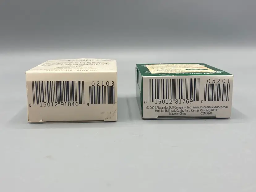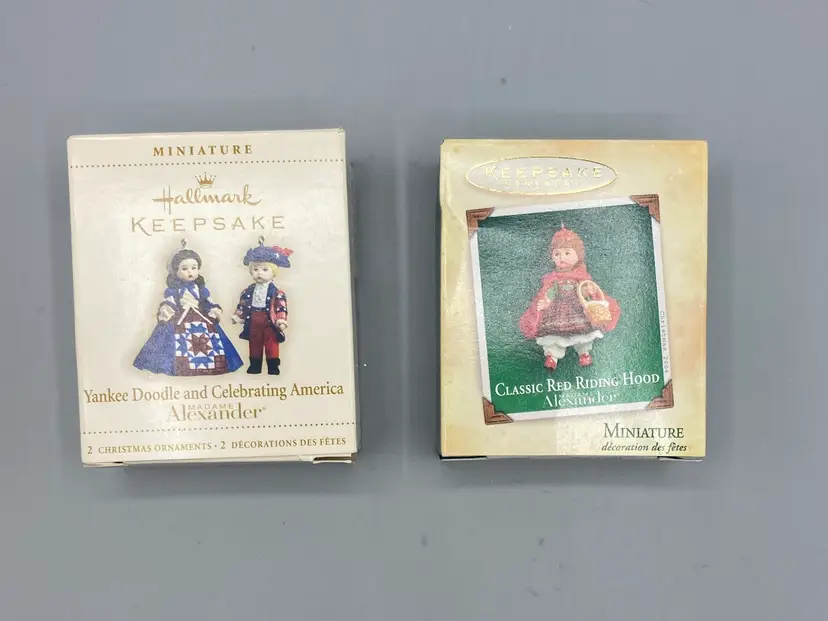 These ornaments are in good condition and come with their original boxes. Each ornament measures approximately 1 1/2" tall.