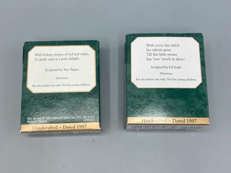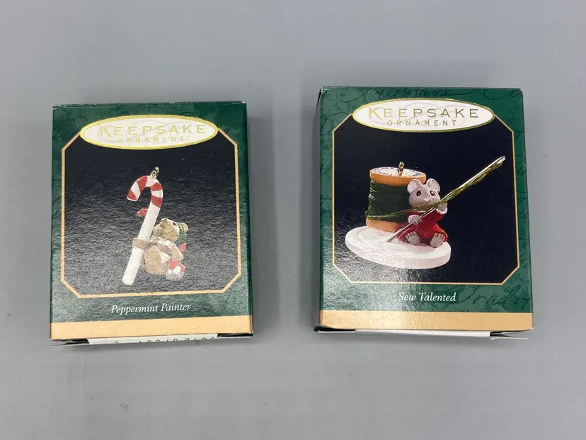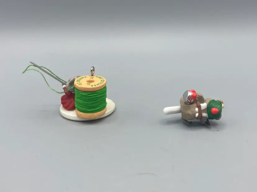 These ornaments are in good condition. They measure approximately... Peppermint Painter - 1 1/4" tall Sew Talented - 1" tall