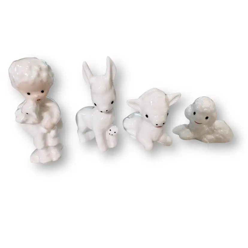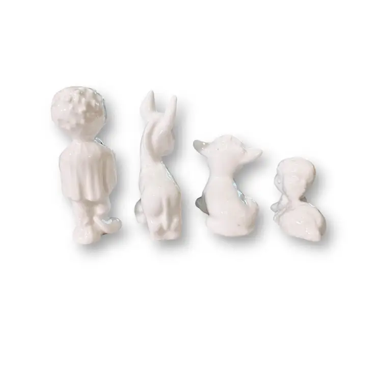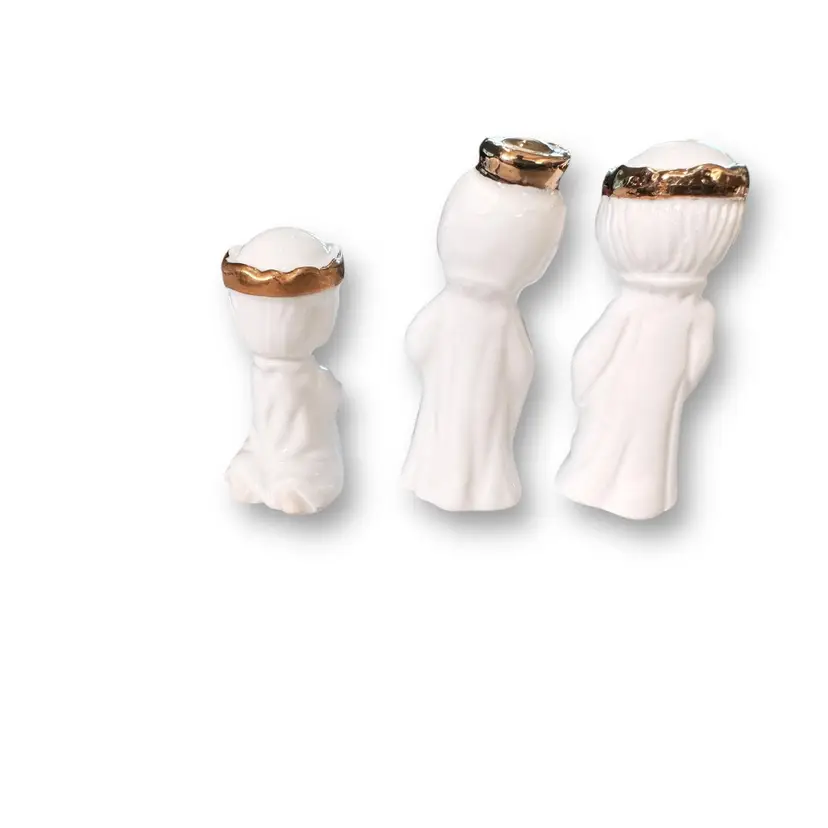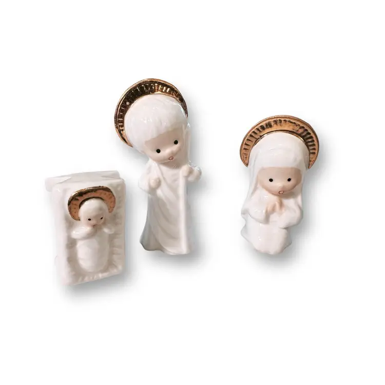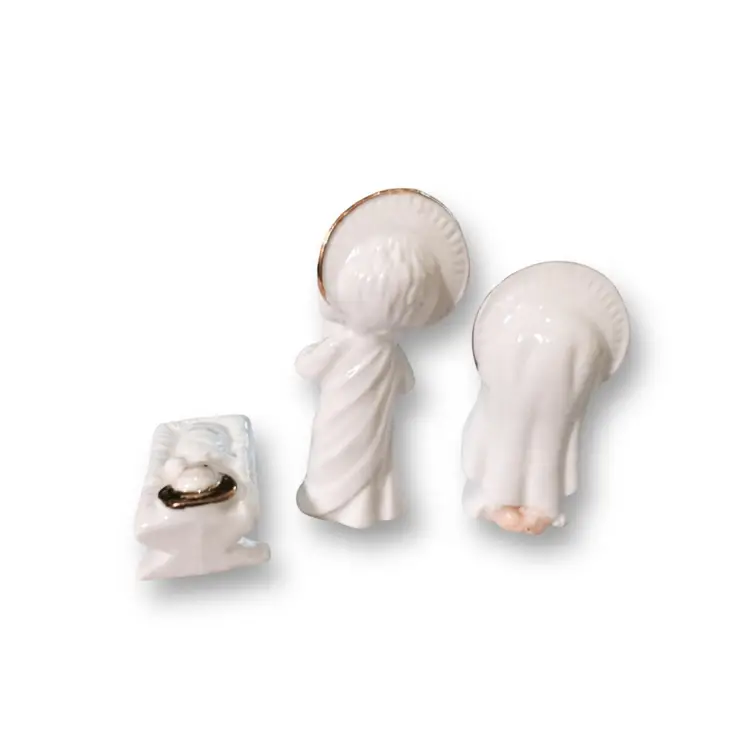 Beautiful vintage miniature White Porcelain/Bone China Nativity Set with Gold Trim. The set is made in Taiwan Hand-painted Original box NOT included