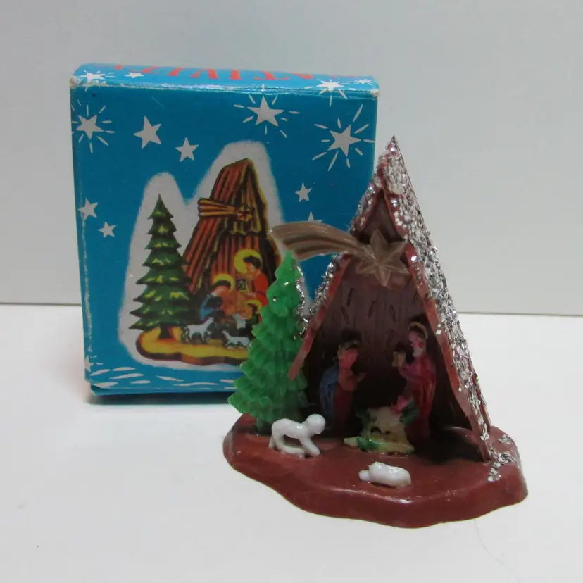This lovely miniature nativity has some damage, sadly the lamb has a broken head. Still a nice piece to display, it is about 2" x 2" x 1". This is shipped from a smoke free home. Thanks for looking! locub-c
