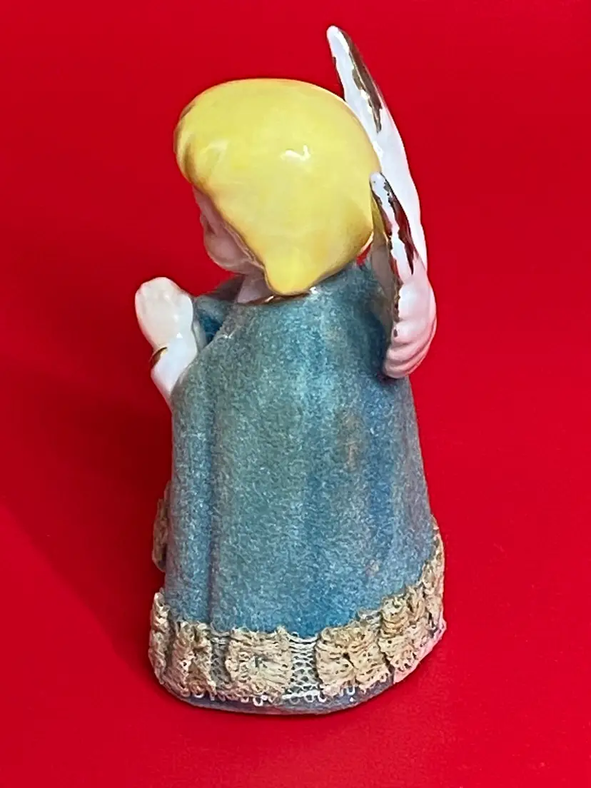 The Vintage Miniature Porcelain Praying Angel is a small and delicate sculpture that stands at 3.5 inches tall with a flocked teal cape, adding a touch of softness to the piece. Made of porcelain, this collectible figurine weighs 2.5 ounces and features intricate details that make it a unique and charming addition to any decorative display. Its multicolor design and lace detailing make it a standout piece for collectors of vintage and artisanal items.
