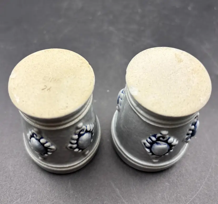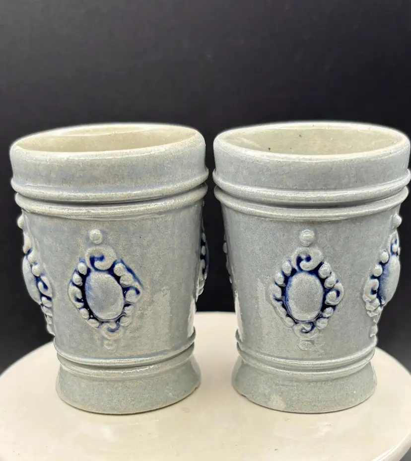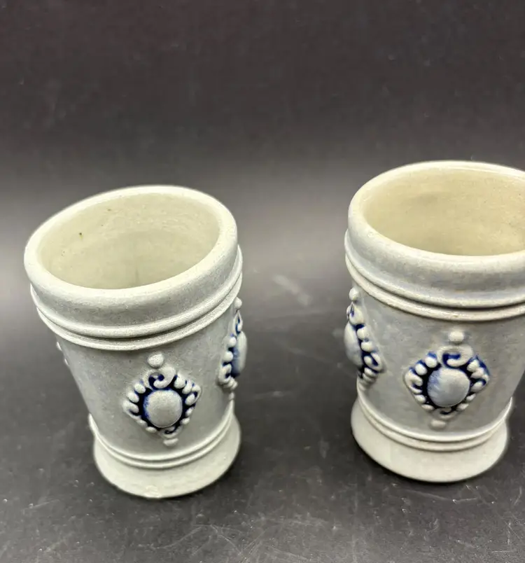 These are miniature steins from the King company. Produced in West Germany before reunification. The base of these cups features a visible mark that reads "KING" and the number "24." This mark is consistent with those found on "King" brand beer steins, which are known for their production in West Germany.