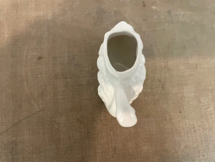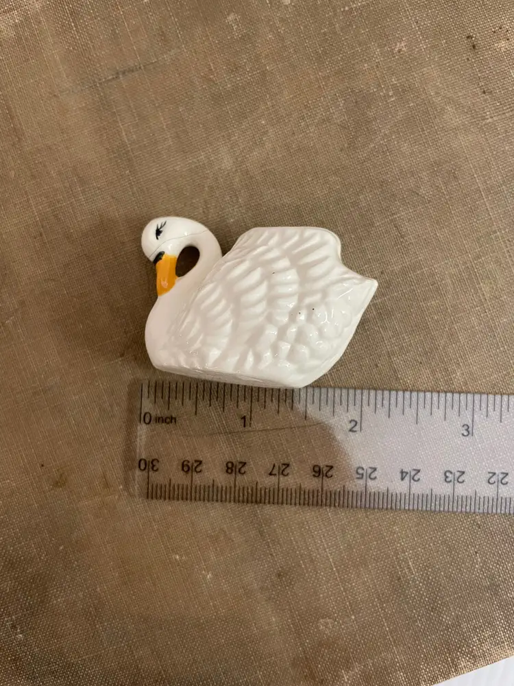 There are no cracks or chips. There is one small yellow spot on her neck. It is the same color as the beak, so it could be from painting.