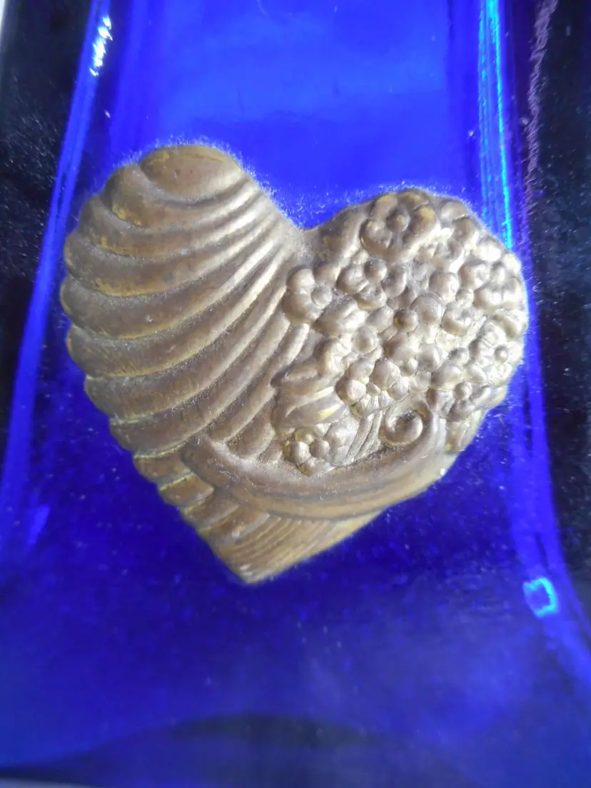 floral brass look heart on one side which has a nice patina, clean or leave as is