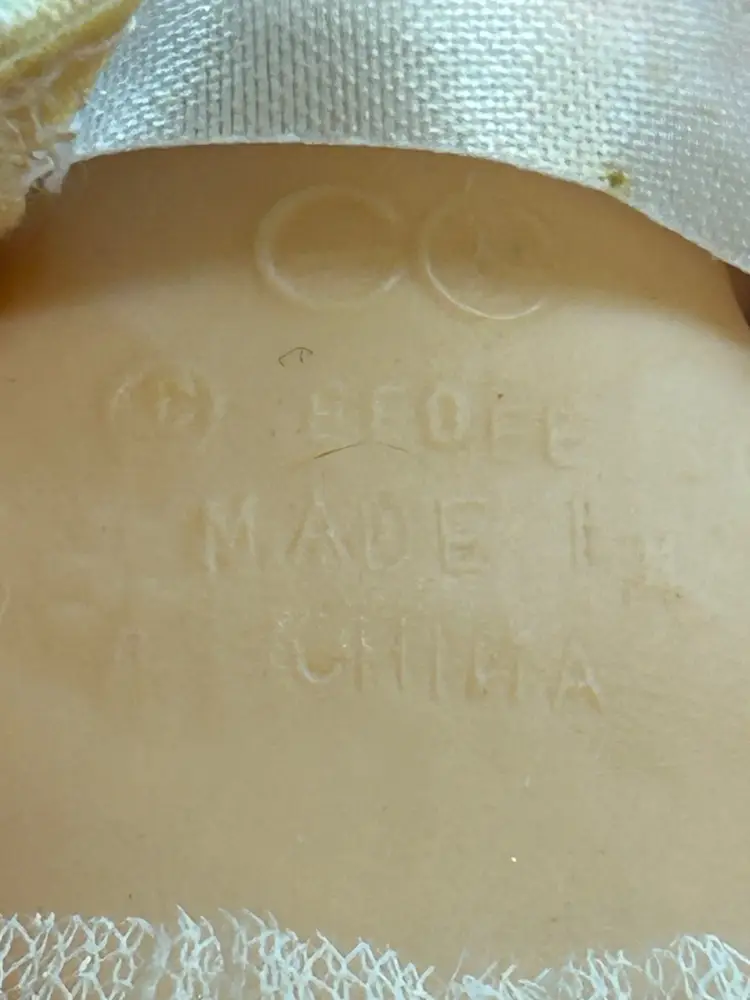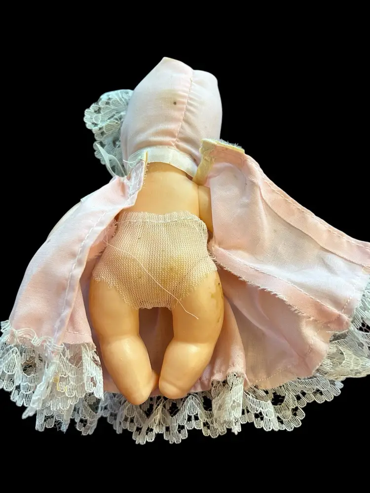 EEOOEE made in China. Needs cleaning. Dress, hat and panties present.