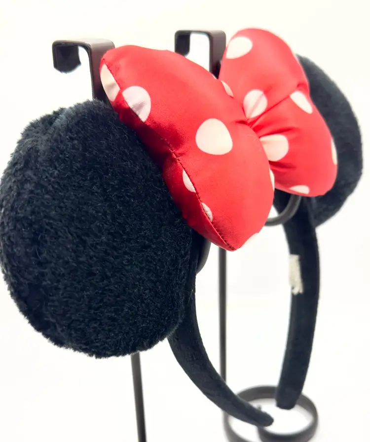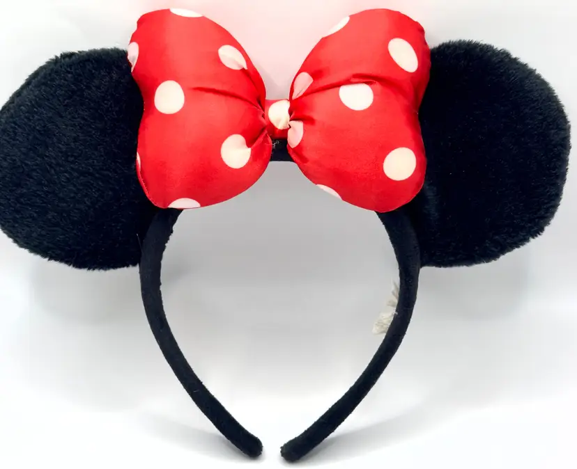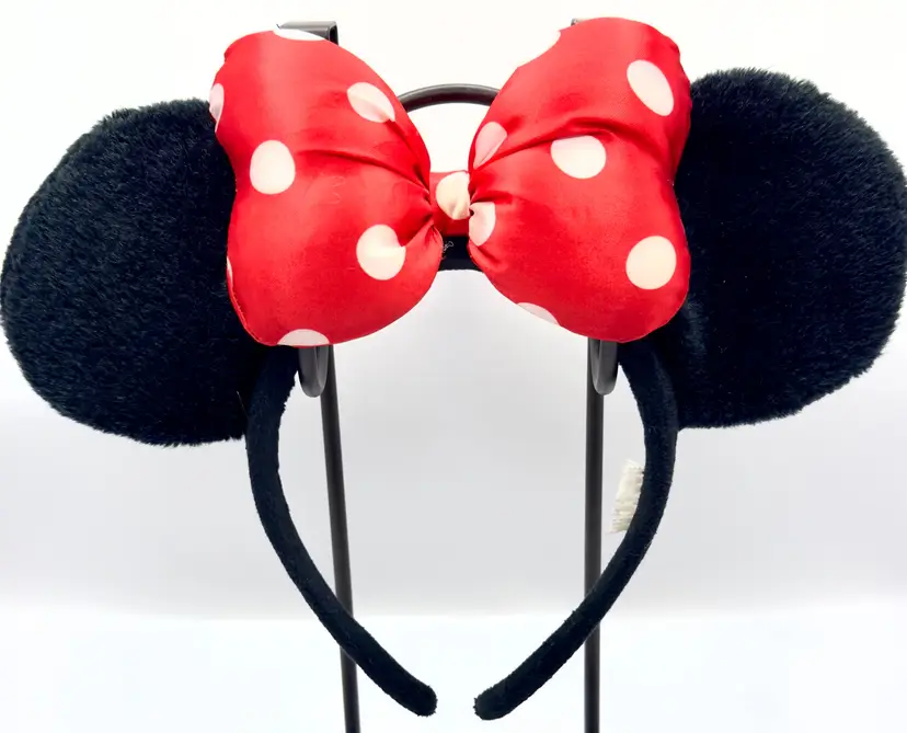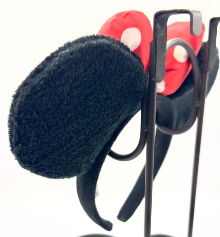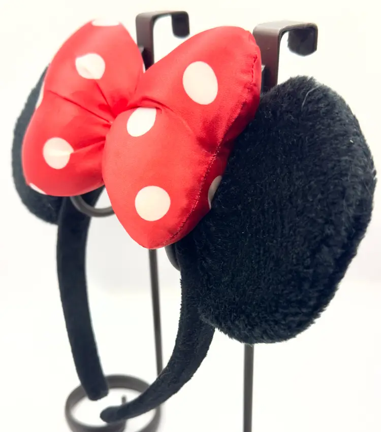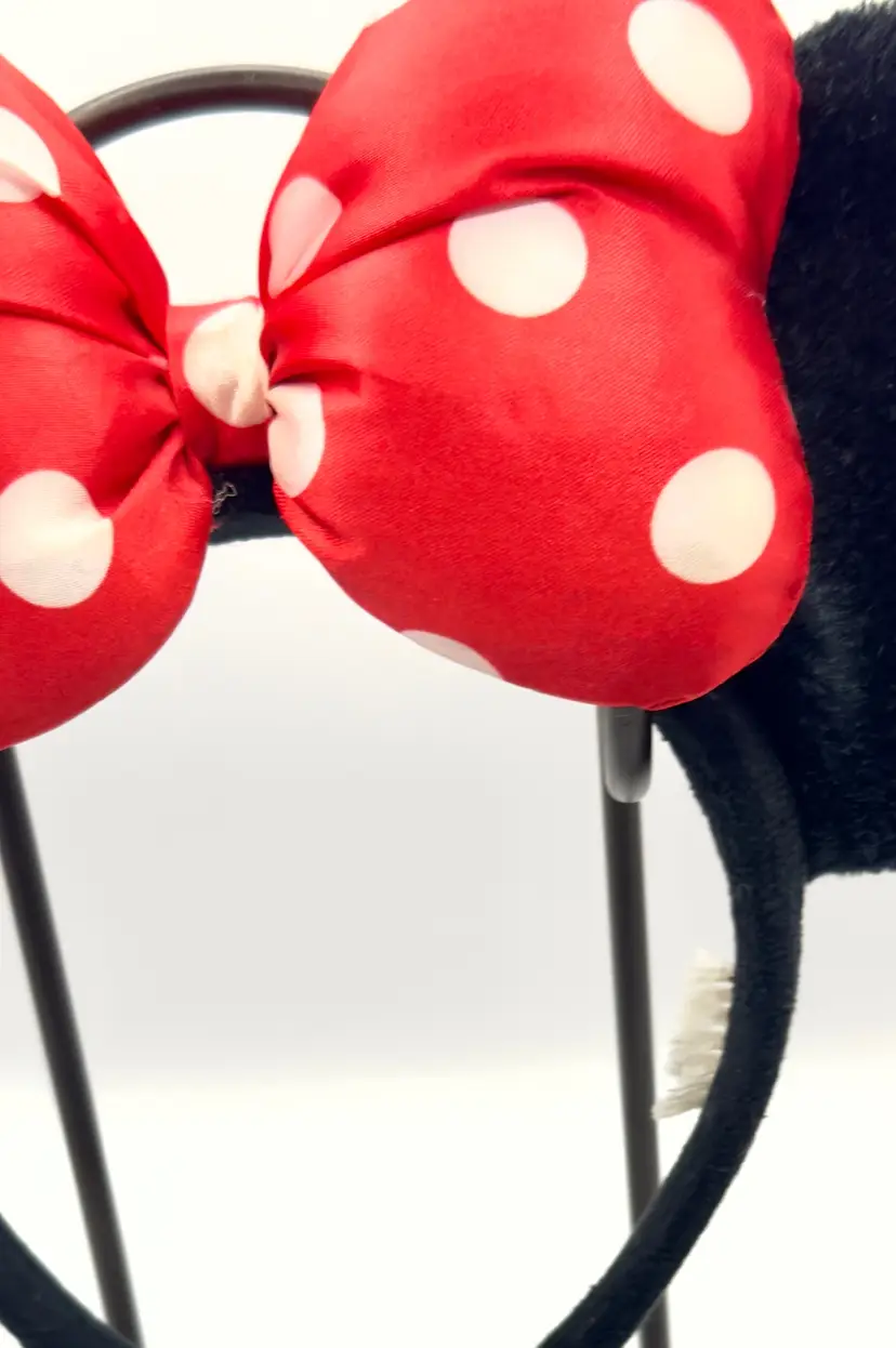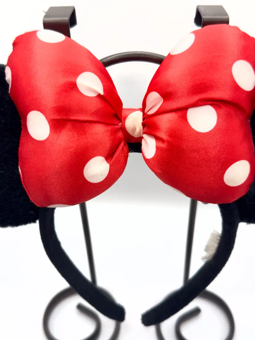Step into the magic with this vintage Minnie Mouse ears headband. Featuring iconic black ears and a vibrant red polka dot bow, this headband is perfect for Disney fans and collectors alike. Whether you're heading to the park or adding to your Disney memorabilia, this headband is a must-have. Excellent condition. Tag shredded (see pic). Measures 10.5x8.5 inches. Weighs 8oz. Stand not included.