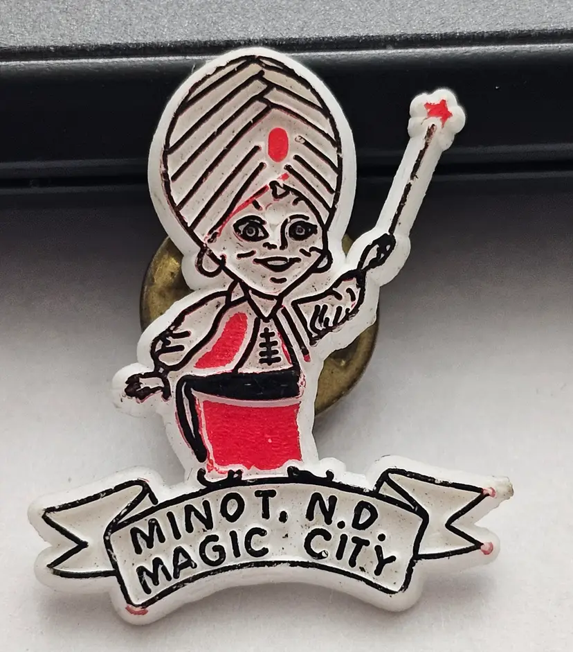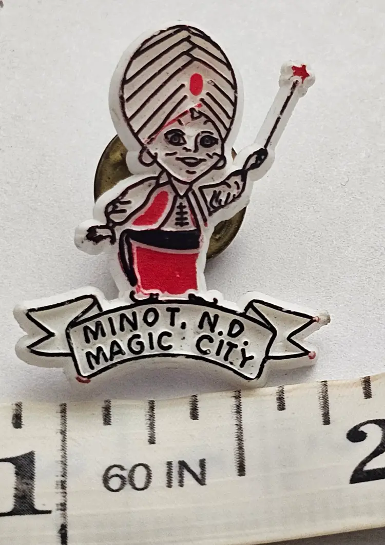 The Vintage Minot ND Magic City State of North Dakota Souvenir Lapel Pin is a collectible pinback that showcases the unique charm of Minot, North Dakota. This vintage pin is a great addition to any collection of pinbacks or memorabilia from the region. With its classic design and nostalgic appeal, this lapel pin serves as a great reminder of the state's history and culture. Collectors and enthusiasts of vintage items will appreciate the authenticity and craftsmanship of this special piece.