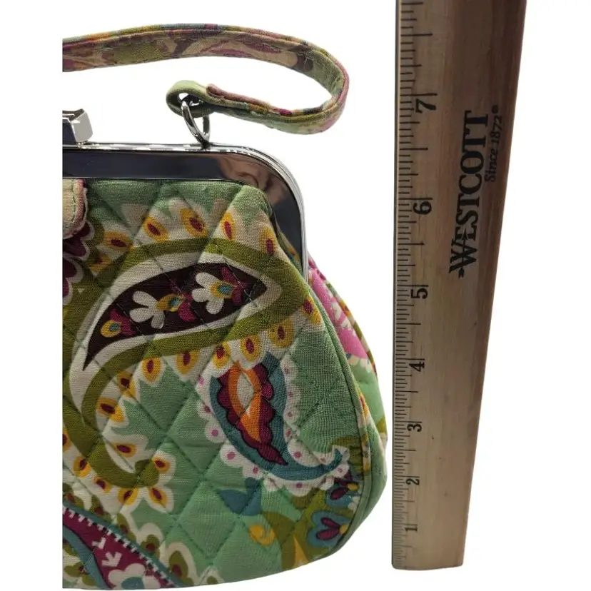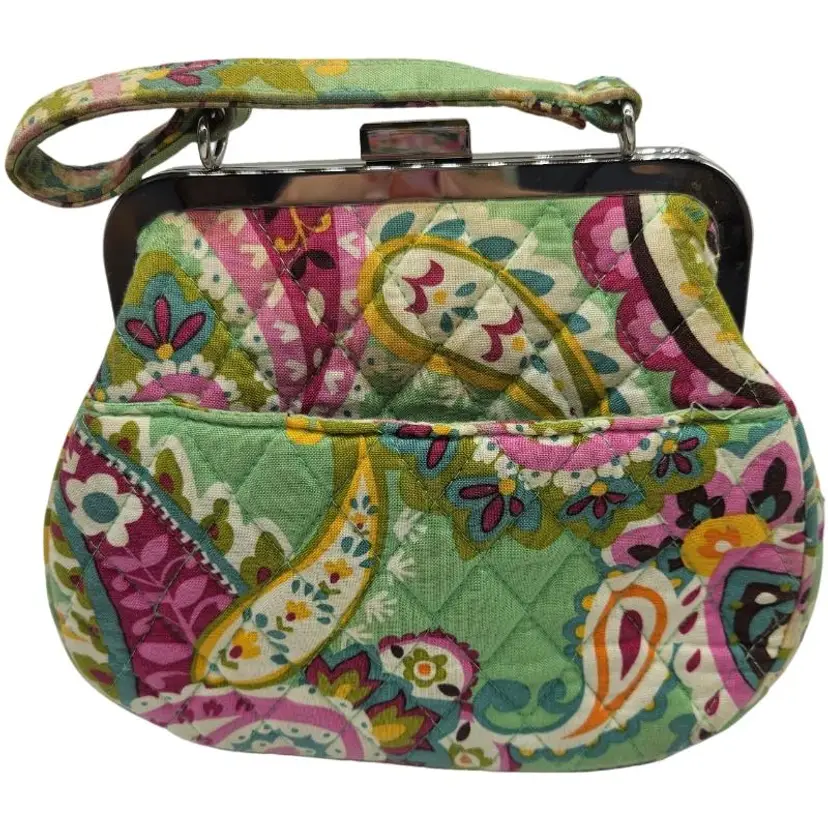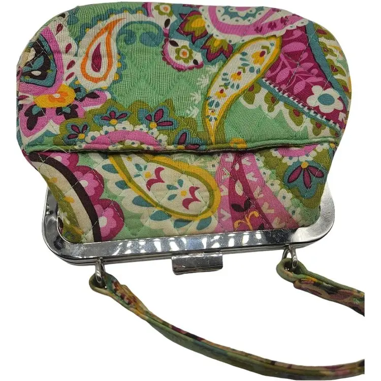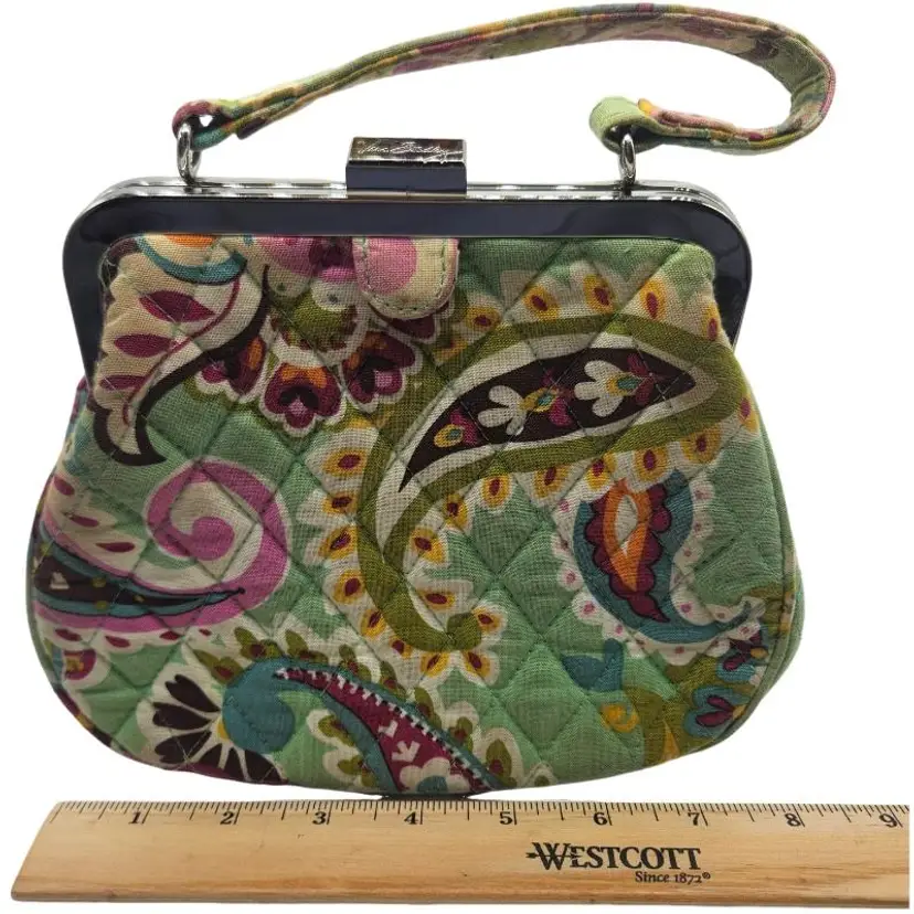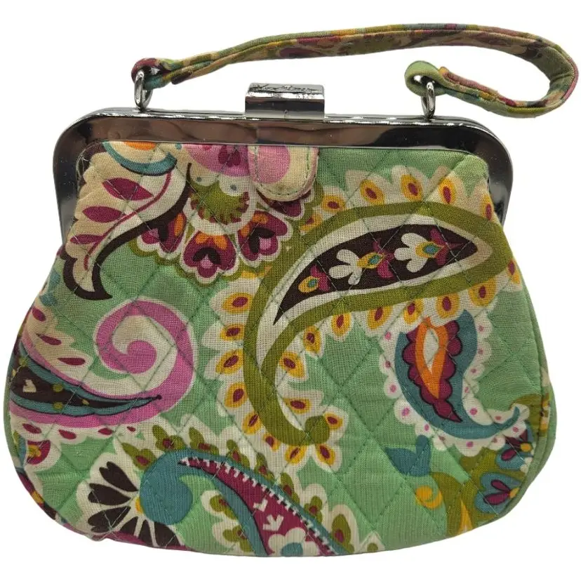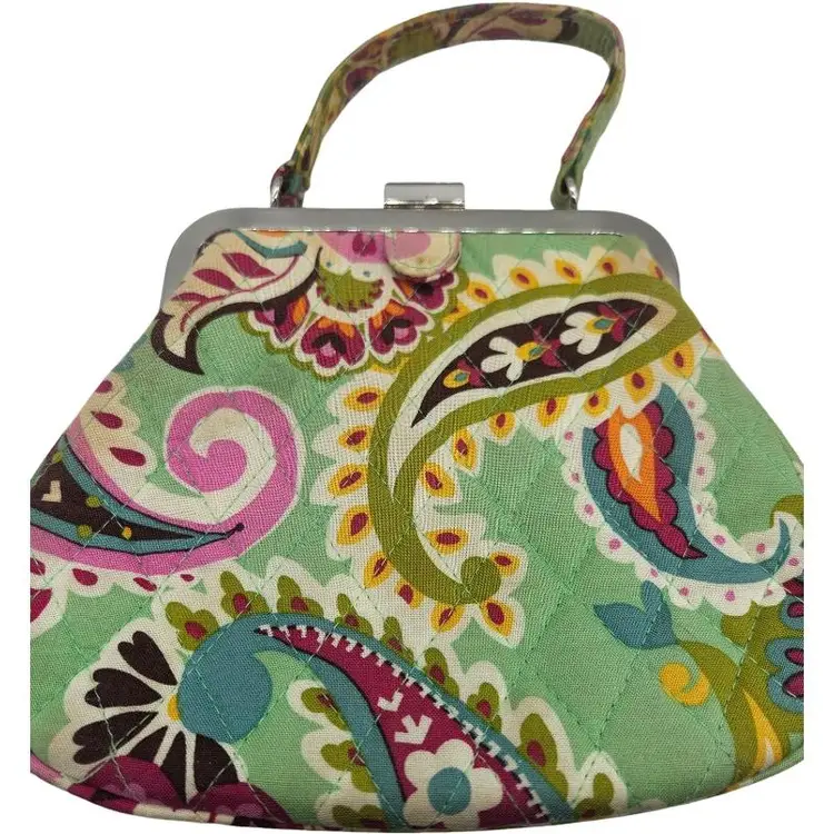 Add a pop of color to your outfit with this vintage quilted handbag featuring a vibrant paisley design. Perfect for collectors or as a unique accessory.