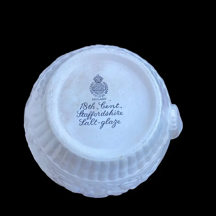 Est. 1793 England 18th Century Stafforshire Salt Glaze Pre- Owned Good Condition No Chips. No Cracks. Weight- 7.3 Oz Width- 4.5 inches Height- 5 inches Diameter- 2 inches