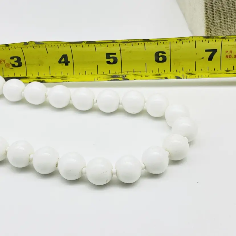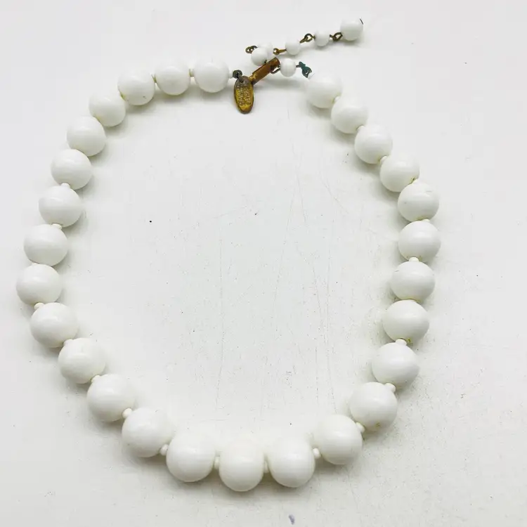 Vintage Miriam Haskell White Milk Glass Bead Necklace Signed Baroque Style Adjustable