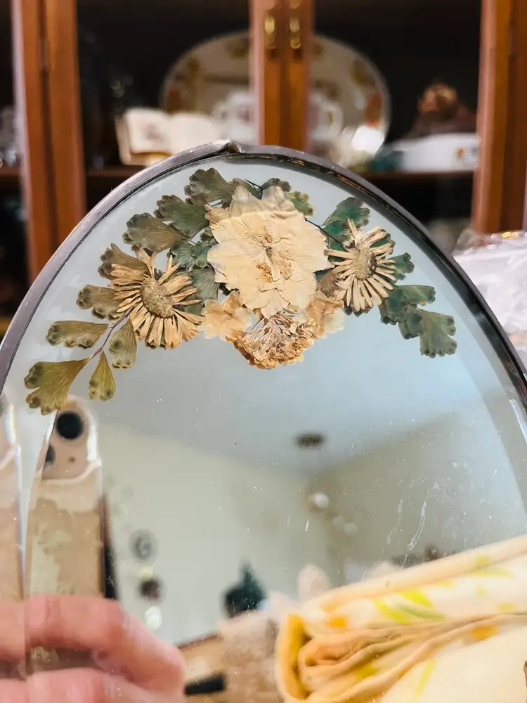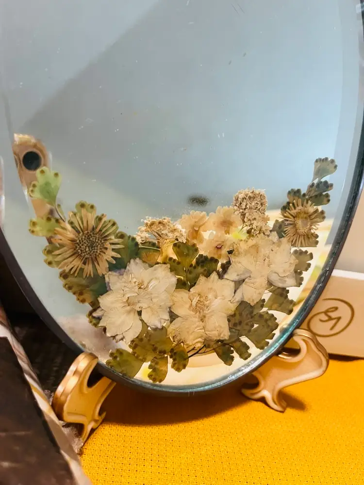 🌼✨Vintage oval mirror with dried flowers✨🌼
