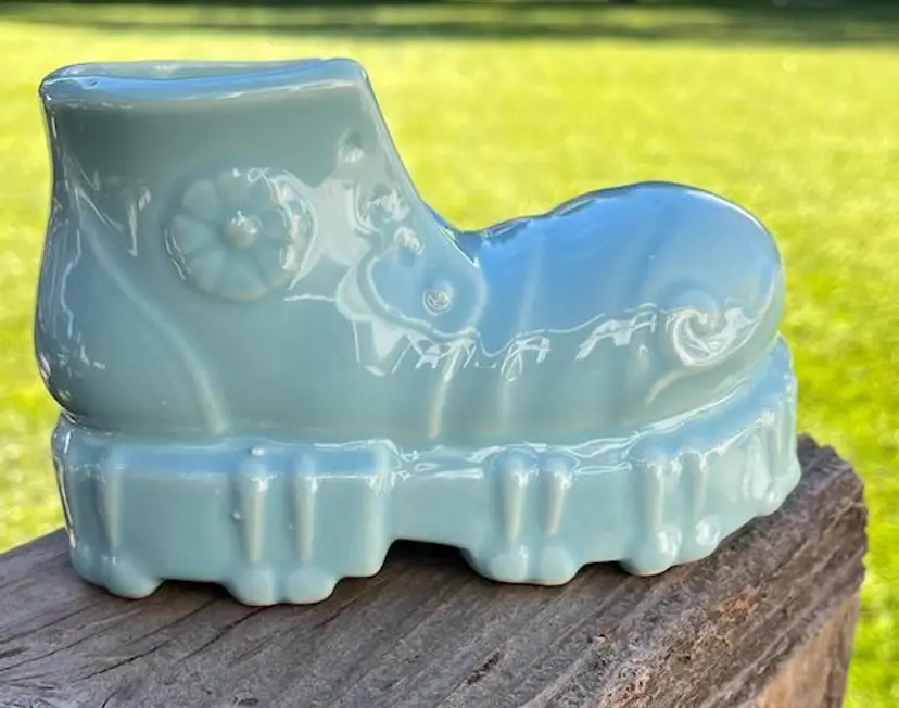 This screams the 70's to me! A Vintage ceramic Boot decorated with flowers and scrolls. The sole is thick and has really cool emphasized tread. Approximately 4" Tall, 6" Long and 3" wide. Amazing condition, free of any nics, flea bites or crazing. The size makes it great for smaller art supplies, pens & pencils or just decor. You'll love it!
