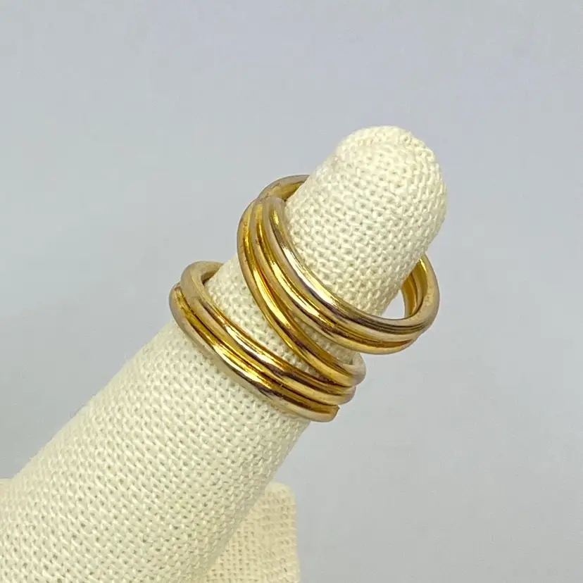 Vintage Modernist Gold Tone Split Open Coil Wrap Band Stacking Pinky Ring. Good vintage condition. Please see pictures for details. SMOKE FREE/PET FREE HOME Ring size- 4.5